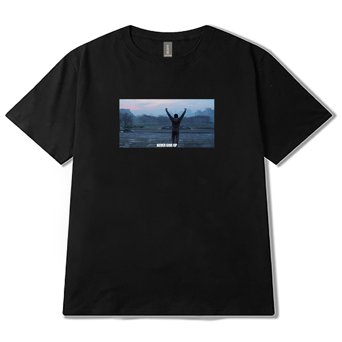 フォトプリント ロッキー 柄 Tシャツ シルヴェスター・スタローン 映画Tシャツ カジュアル 半袖 6.0oz コットン100% ユニセックス M