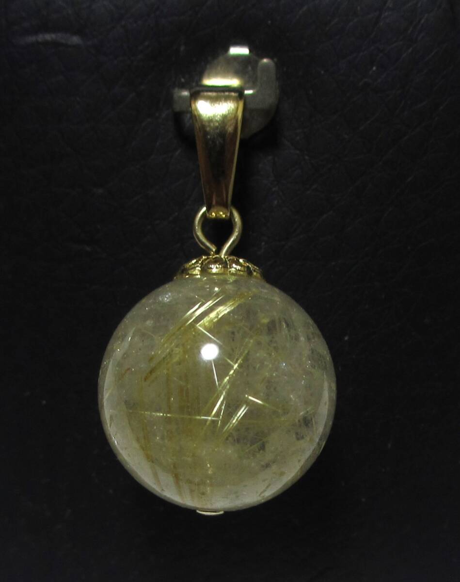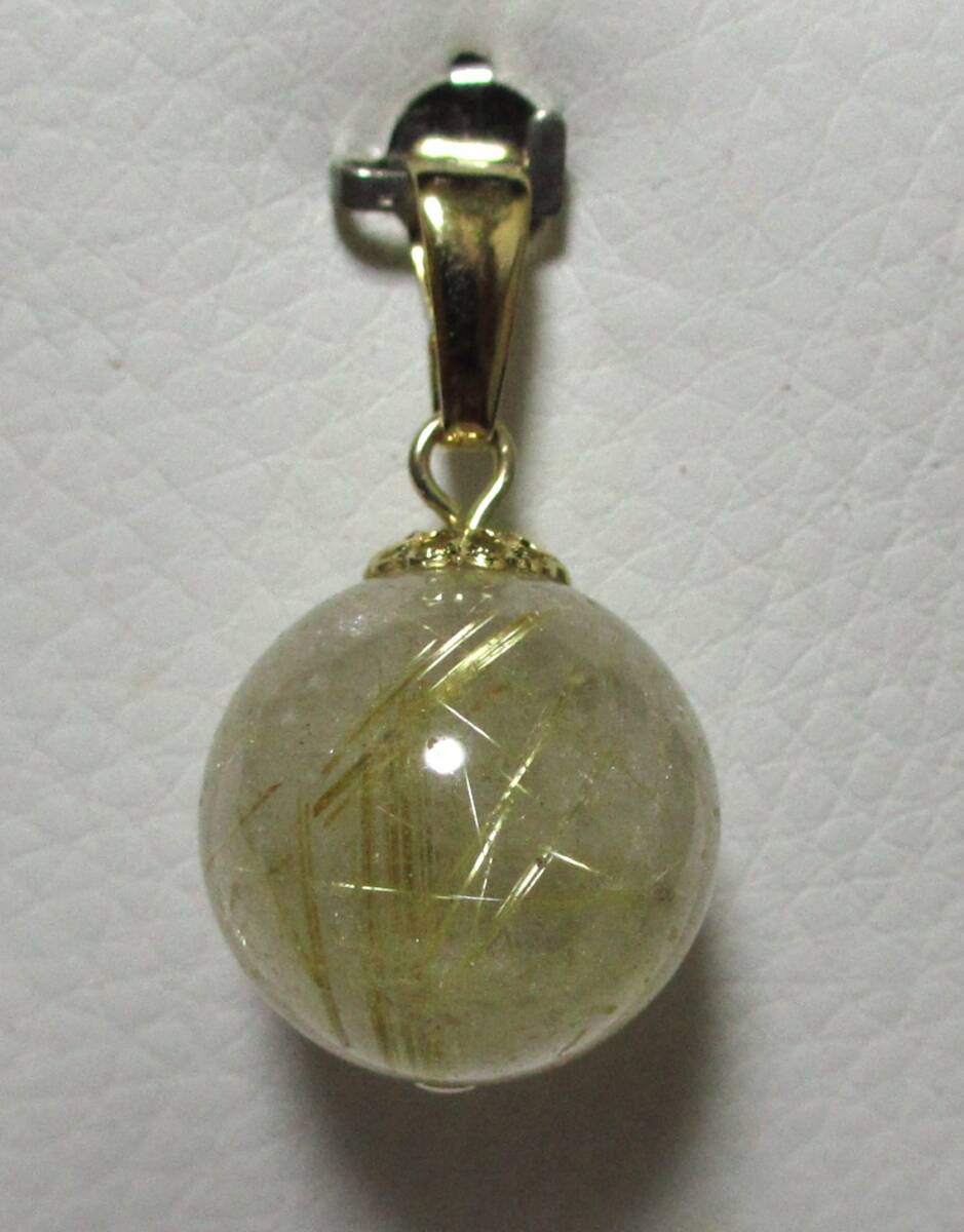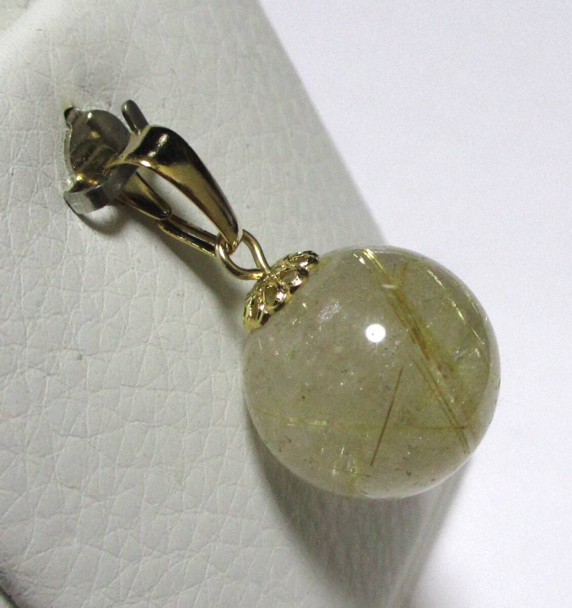 bzg■天然石ペンダントトップ■ ルチルクォーツ 15.5ミリ玉