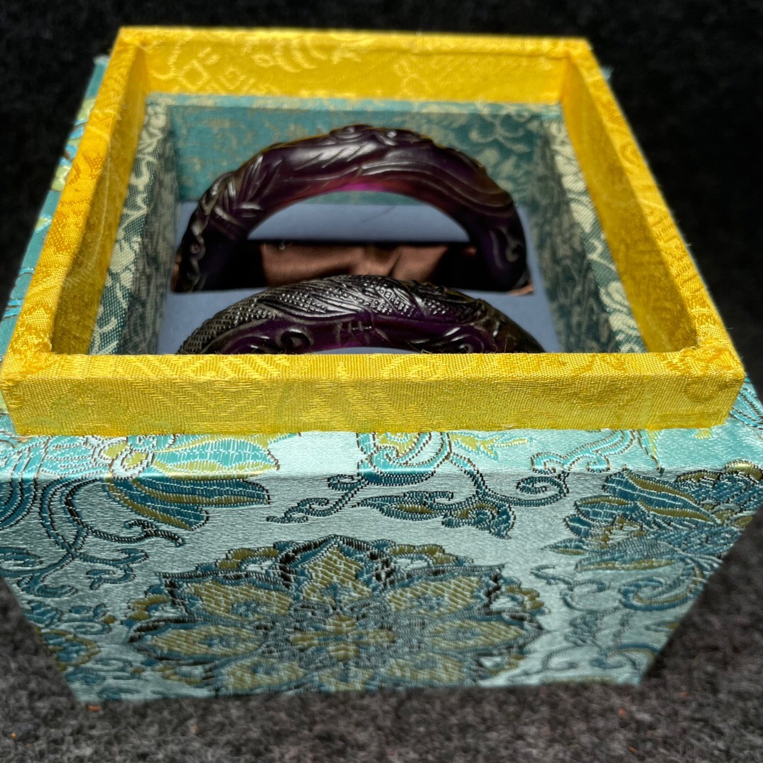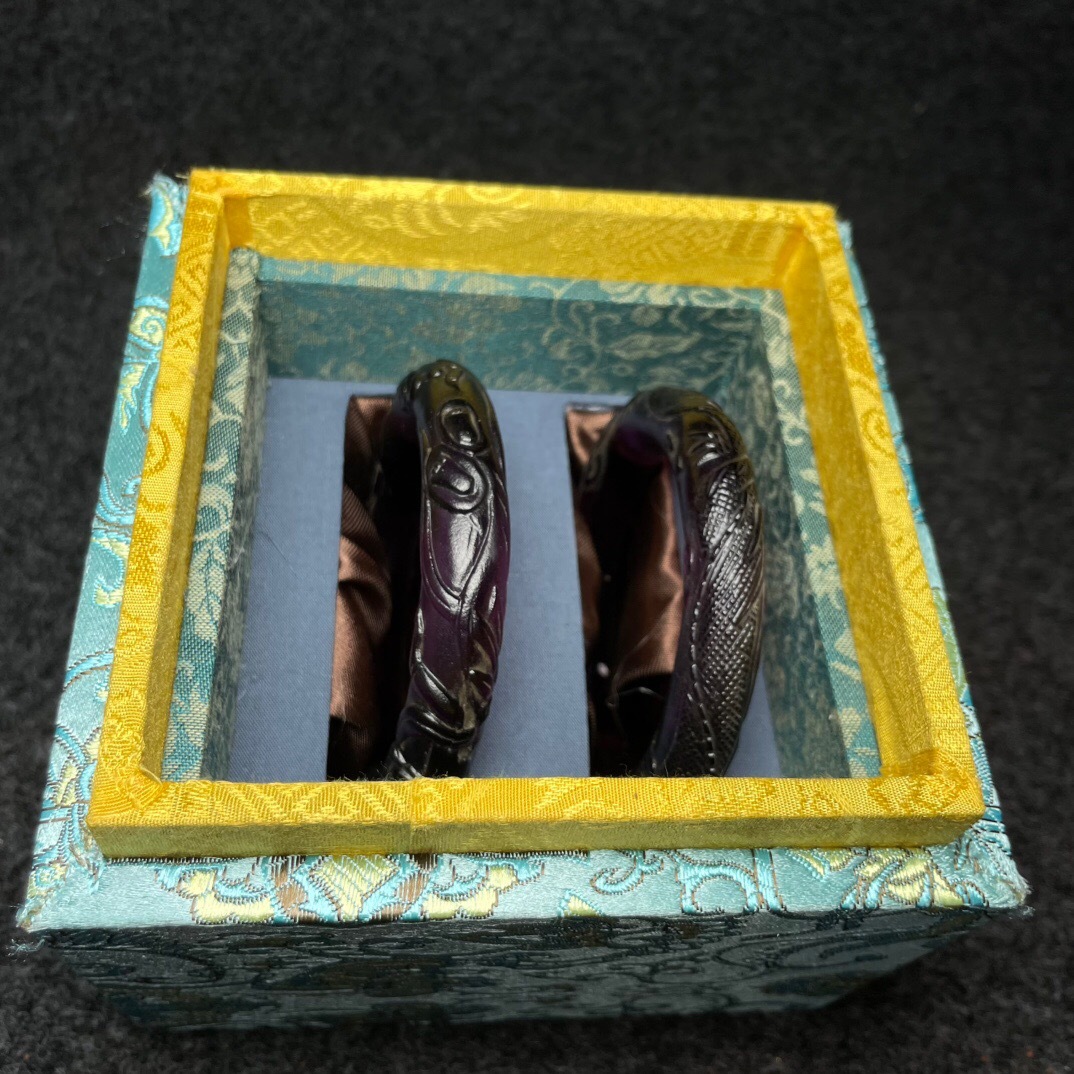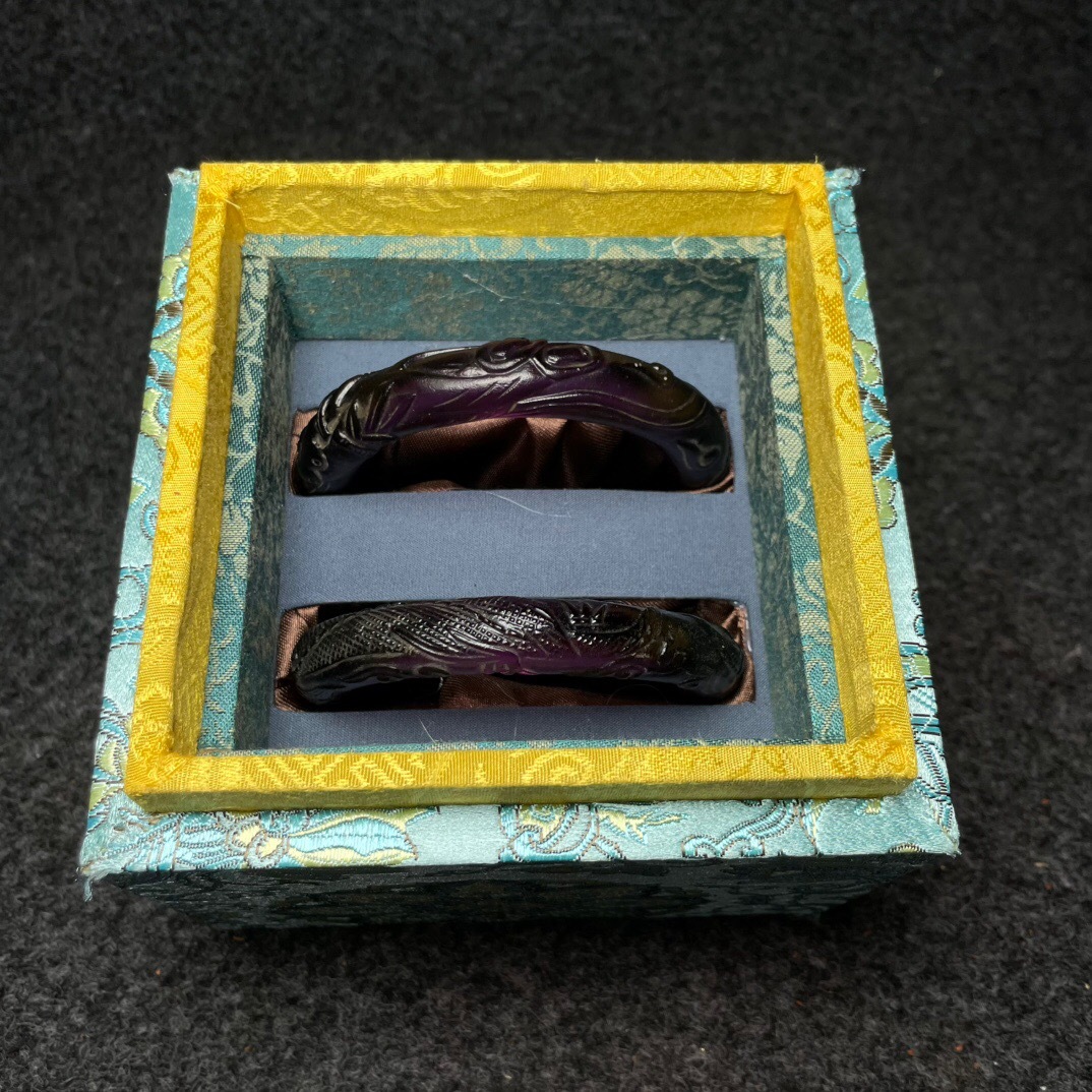 『清・琉璃製・細密彫・腕輪一對・箱付・根付・裝身具』極細工 置物 古賞物 中国古玩 中国古美術