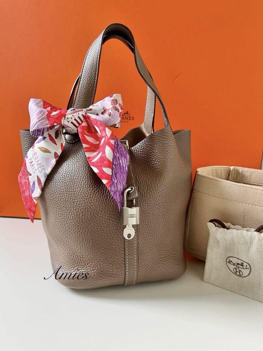 エルメスで大人気のピコタンロックMM、お色は大人気カラーのエトゥープです。なかなか入手できないお色です。