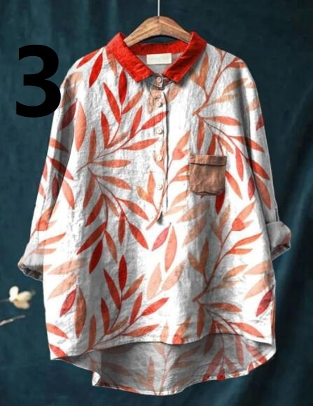 新入荷柄選択可シャツ ブラウス 着痩せ チュニックシャツ 綿麻 プリント柄 トップス レディース 長袖 体型カバー チュニック