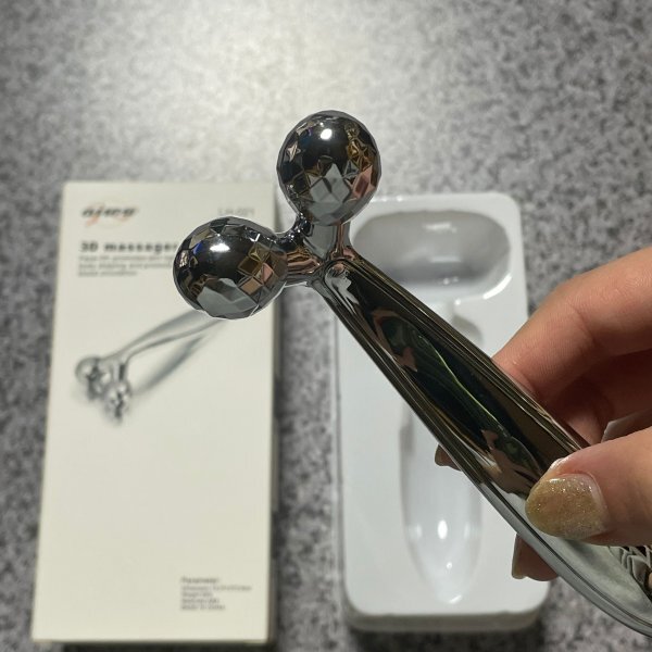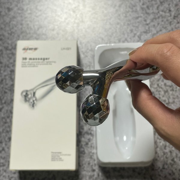 美顔ローラーはY字型なので、エステシシャンの指使いみたいに深く摘まんで、流していくようなシャープな動く、2つのローラーで肌を挟み込むようにしてつまんで揉みほぐします。顔だけでなく体にも使えます。