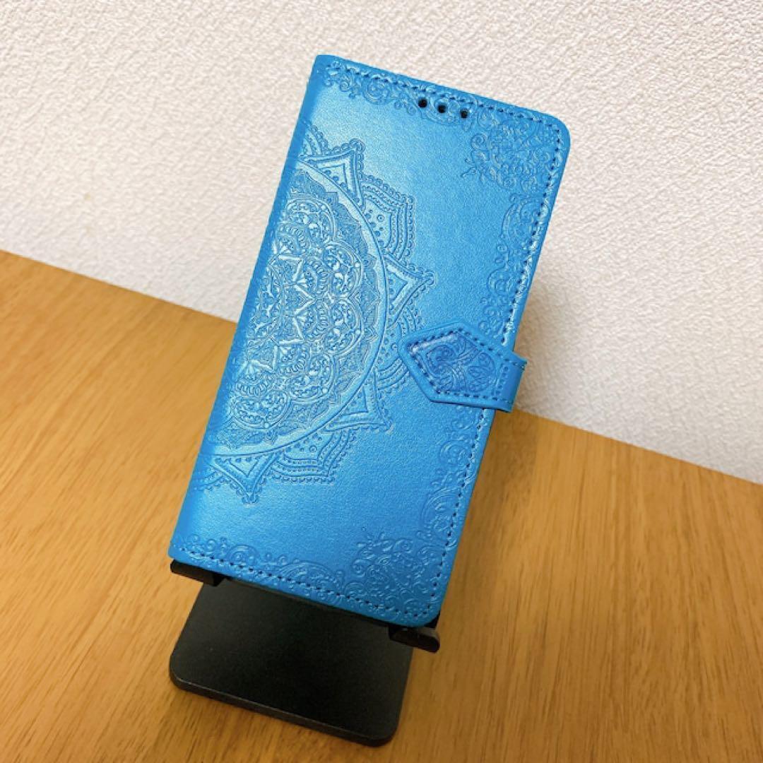 エンボス加工スマホケース 手帳型 iPhone13/14 ブルー