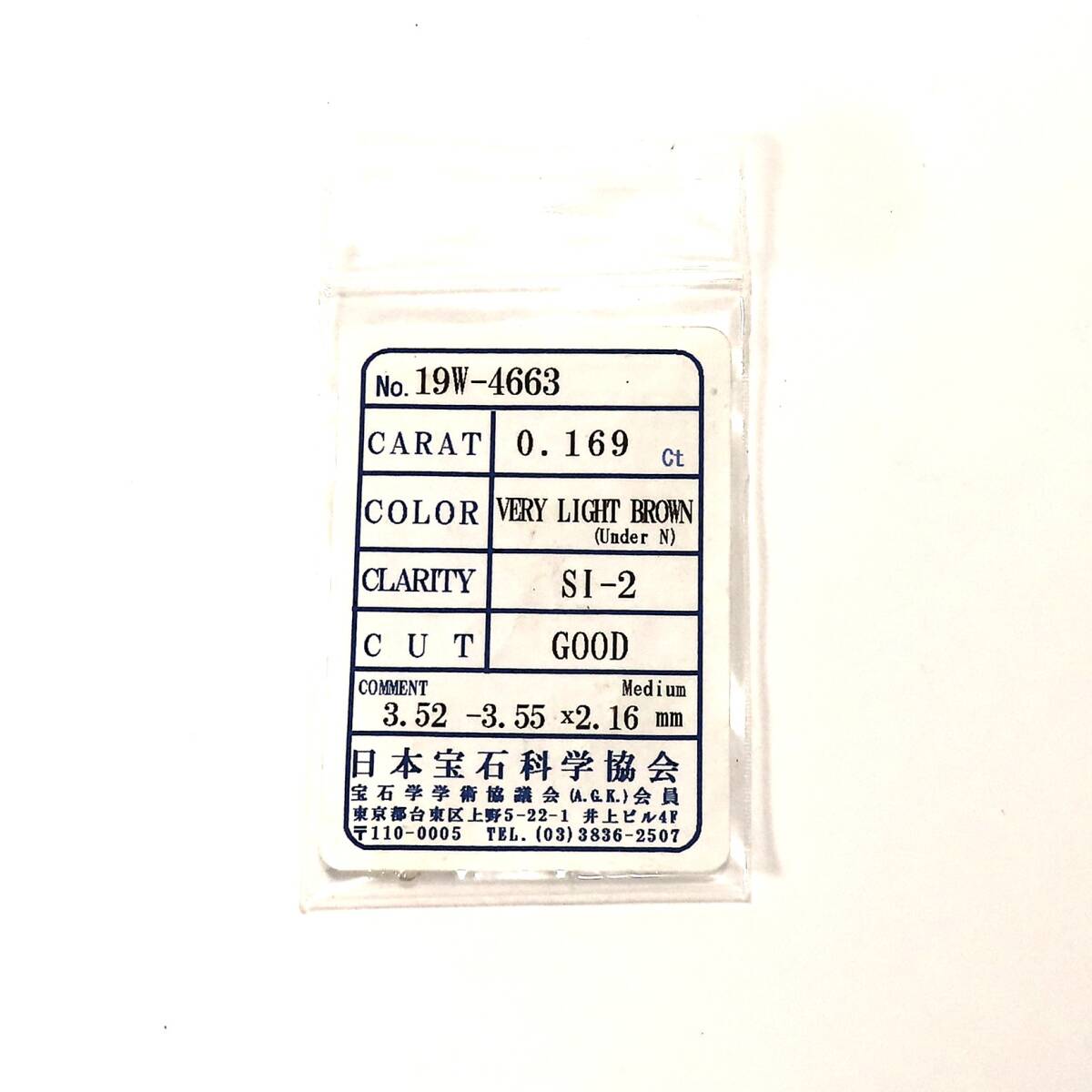ダイヤモンド ルース 裸石 天然石 0.169ct SI-2 3.52-3.55×2.16mm 日本宝石科学協会 ソーティング付き