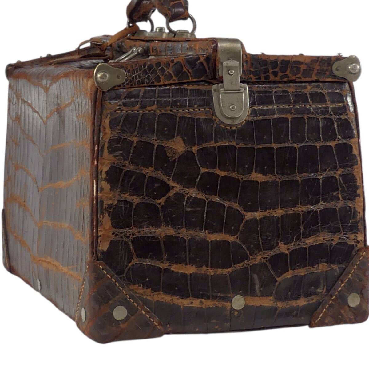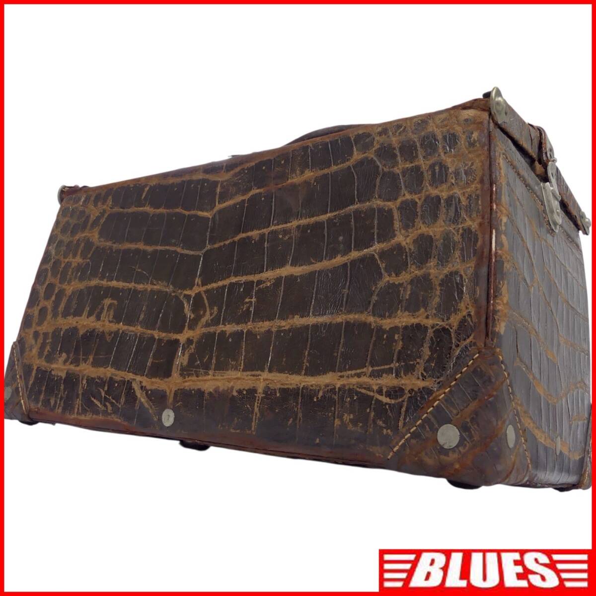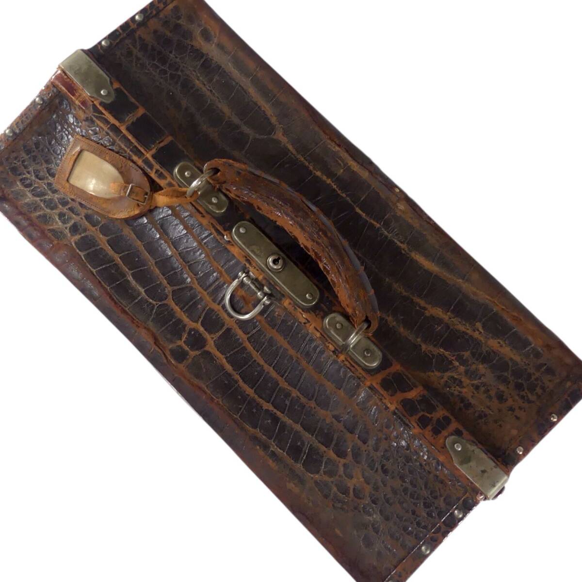 即決★N.B.★トランク 昭和 レトロ メンズ レディース クロコ型押し 茶 ブラウン 本革 トラベルバッグ スーツケース 旅行 出張 鞄 什器