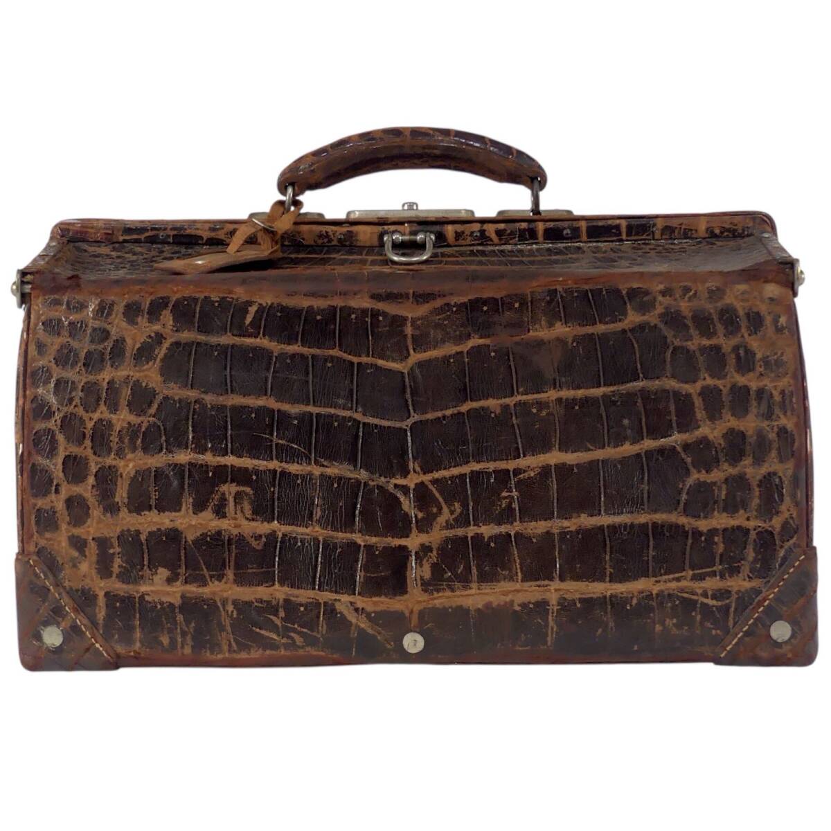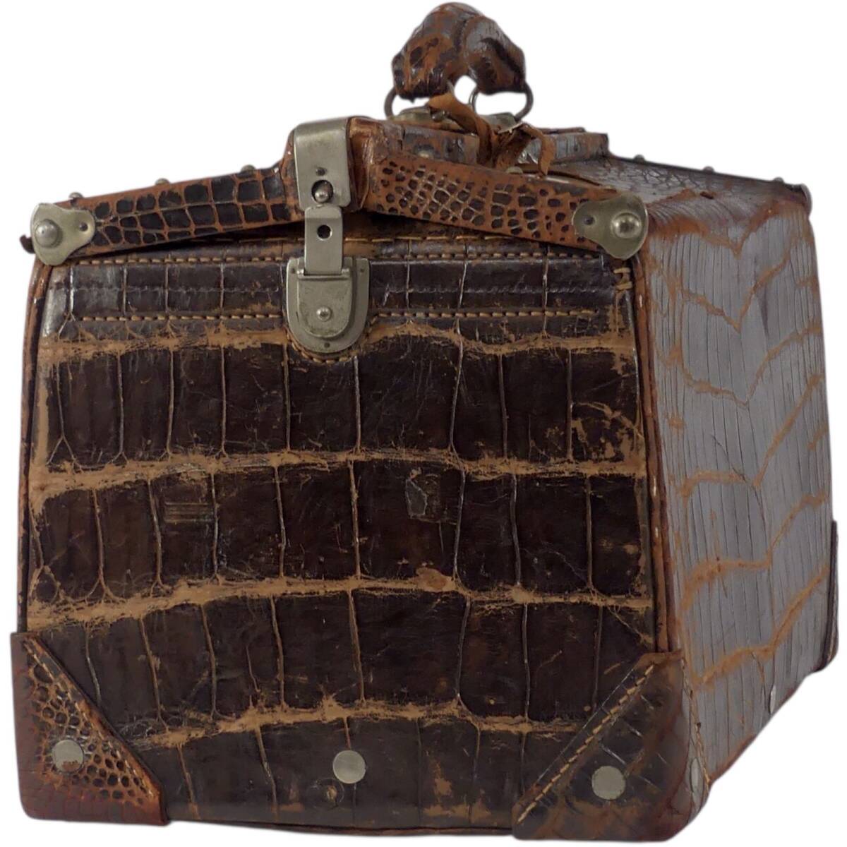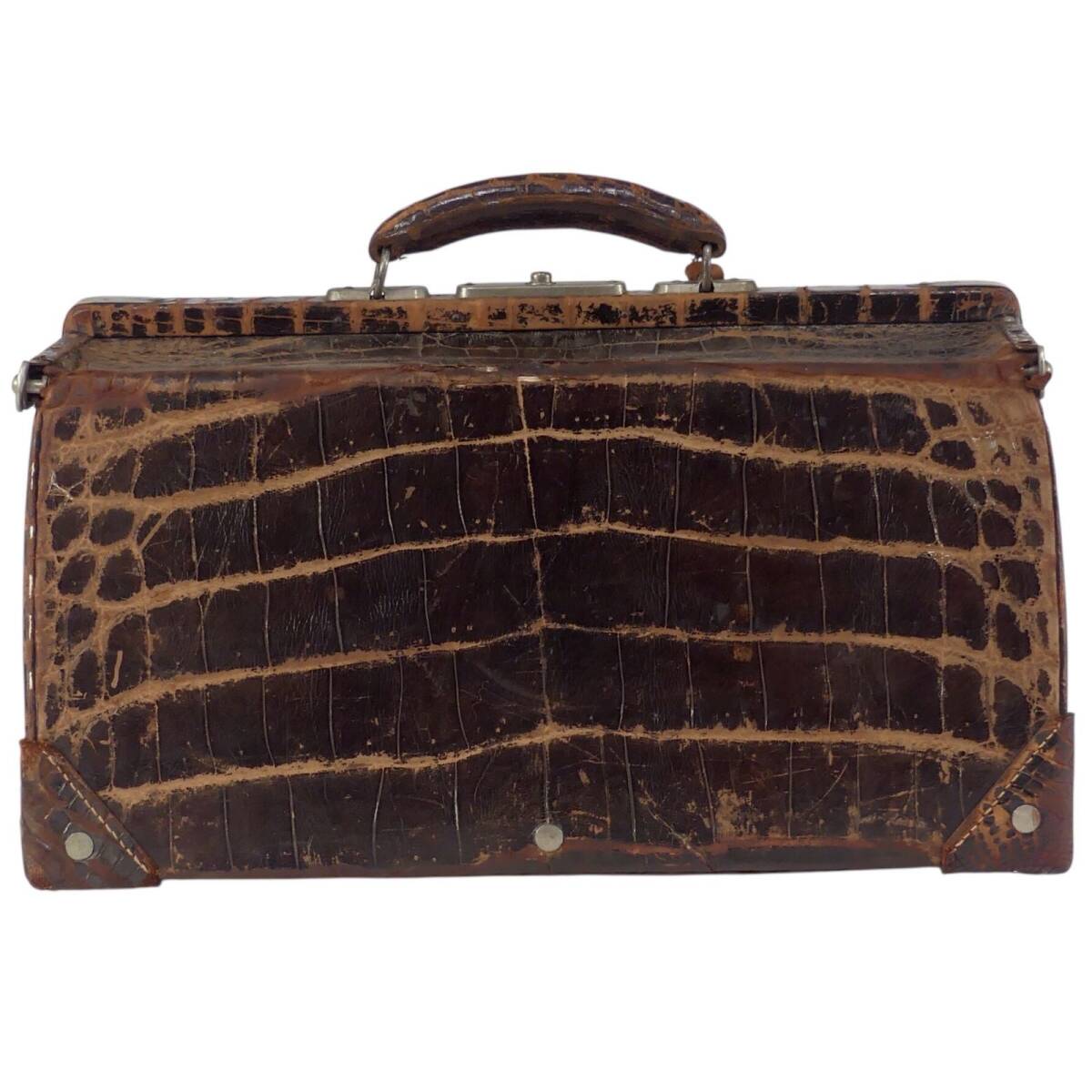 即決★N.B.★トランク 昭和 レトロ メンズ レディース クロコ型押し 茶 ブラウン 本革 トラベルバッグ スーツケース 旅行 出張 鞄 什器