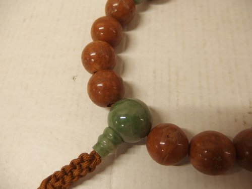 ☆★☆---☆★☆---☆★☆---☆★☆---☆★☆---☆★☆---☆★☆---☆★☆---☆★☆---☆★☆【ゆうパケット発送商品】真言宗 本星月菩提樹 虎目石 念珠【商品概要】希少な鳳眼菩提珠(ほうがんぼだいじゅ)に、アクセントとして独山玉(どくざんぎょく)があしらわれた念珠(数珠)です。鳳眼菩提珠はその独特な「眼」の形状が霊的な護りとされ、古くから修行者や信仰者に親しまれてきた素材。独山玉は中国・南陽の名産で、美しい緑系の色合いを持ち、念珠に高級感を与えます。高野山 増福院のお品となります。桐箱入り。修行用・法要用・日々の携帯用としても重宝される一連で、天然素材ならではの深みと風格が魅力の一品です。【サイズ】主玉:約13mm【商品状態】・中古品・珠に若干のスレや風合いの変化あり・房に若干の乱れや変色あり・割れや大きな損傷はありません・箱に書き込み、汚れ、シミの発生あり※状態は画像にてご確認ください。※天然素材のため、個体差・インクルージョン等をご理解の上ご検討ください。以上のような状態ですが、よろしければどうぞ♪(^^)☆★☆---☆★☆---☆★☆---☆★☆---☆★☆---☆★☆---☆★☆---☆★☆---☆★☆---☆★☆