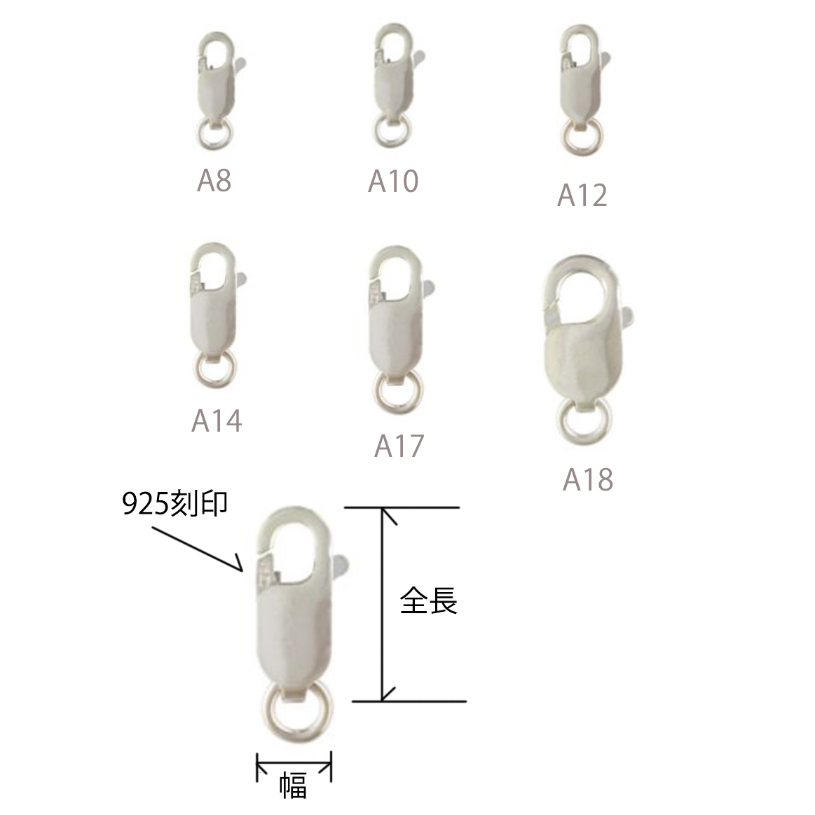 アクセサリー作りに欠かせない留め具パーツになります。ロブスターフック シルバー925製 丸環付 チェーン ネックレス ブレスレットなどアクセサリー留め具 クラスプ 交換/カスタム用に。シルバー925製でメッキやコーティングなどはしておりませんので燻したり艶消しにしたり加工可能です。シルバー925は柔らかい金属で加工しやすいですが丸環を何度もラジオペンチなどで曲げたりを繰り返すと金属疲労から折れてしまいますのでご注意下さい。