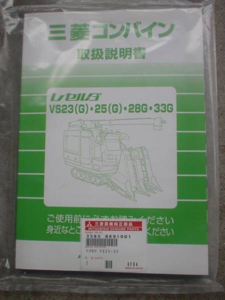 三菱コンバイン、VS23.25.28.33用の取扱説明書、新品1冊の価格です。