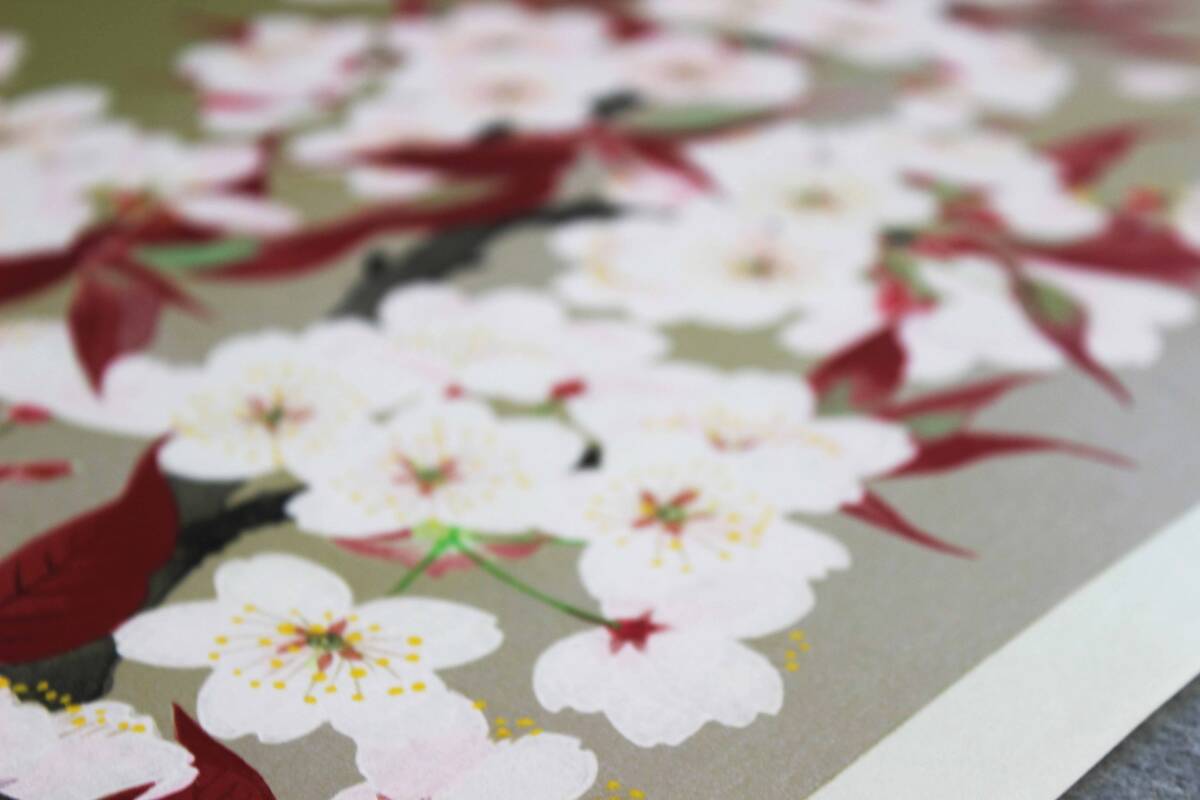 額装 森田りえ子 (Morita Rieko) オリジナル木版画 山桜 限定(250部)