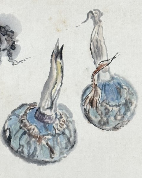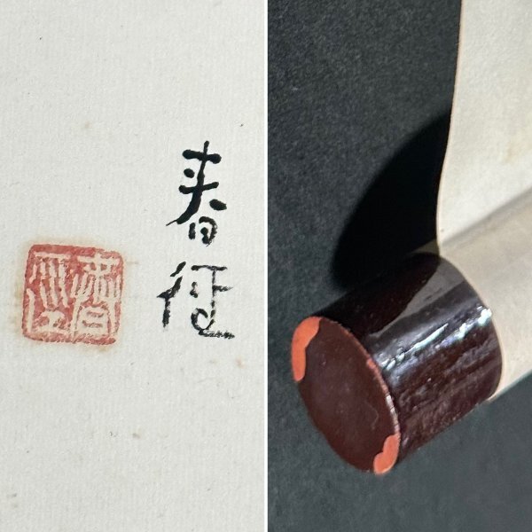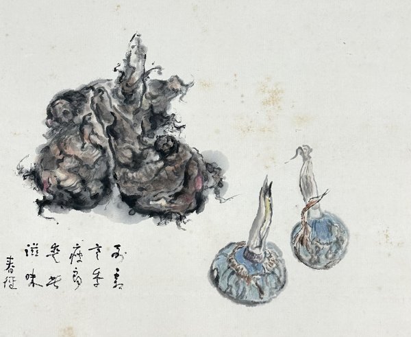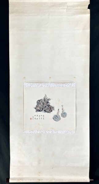 k7307z【真作】田岡春径「里芋くわい図」まくり 紙本 肉筆 サトイモ 慈姑 日本画家 小室翠雲に師事 徳島の人