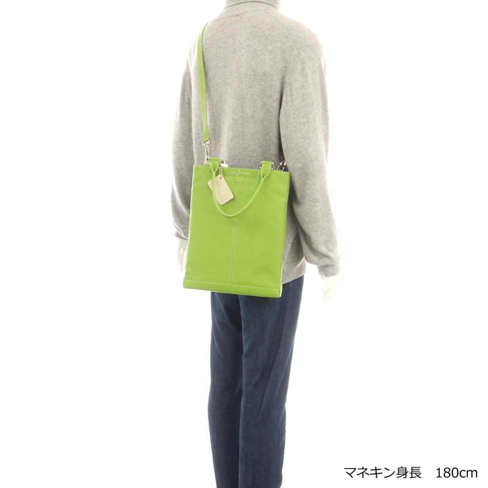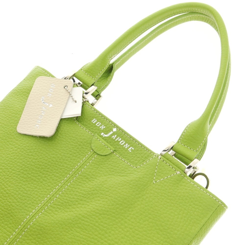 【未使用】ボンジャポネ BONJAPONE シュリンクレザー トートバッグ リーフグリーン【サイズ−】【W25.5xH32xD3】