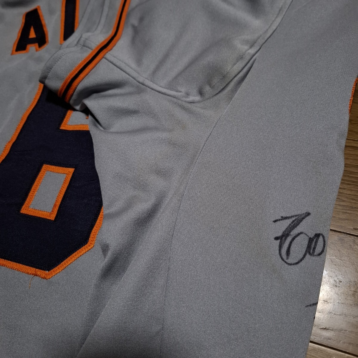 直筆サイン入り実使用ユニフォーム、サインは為書きがあります。