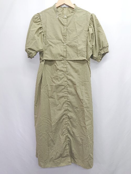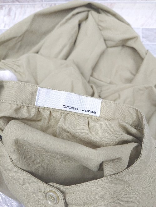 ◇ ⊂ prose verse プロズヴェール シャツ シンプル 半袖 膝下丈 ワンピース サイズF カーキ系 レディース E