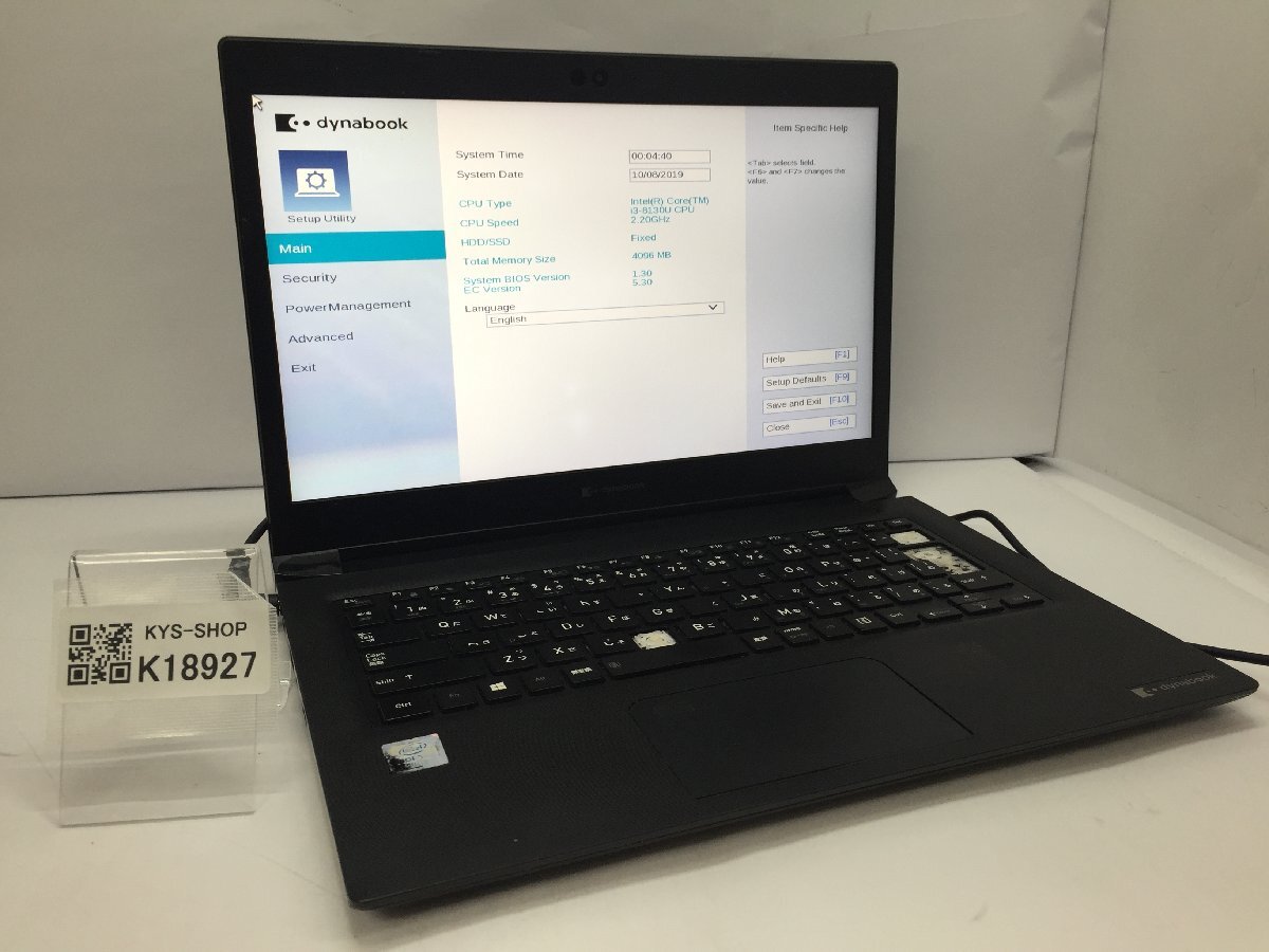 ジャンク/ TOSHIBA dynabook S73/DN PS7DNYCB3LBFD1 Intel Core i3-8130U メモリ4.1GB ストレージ無し 【K18927】
