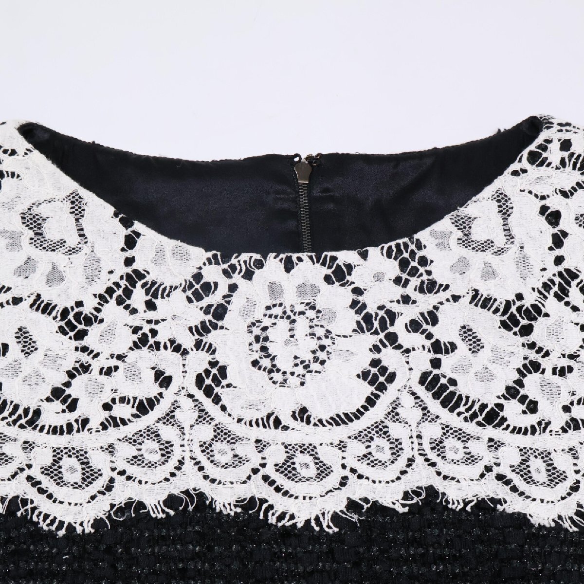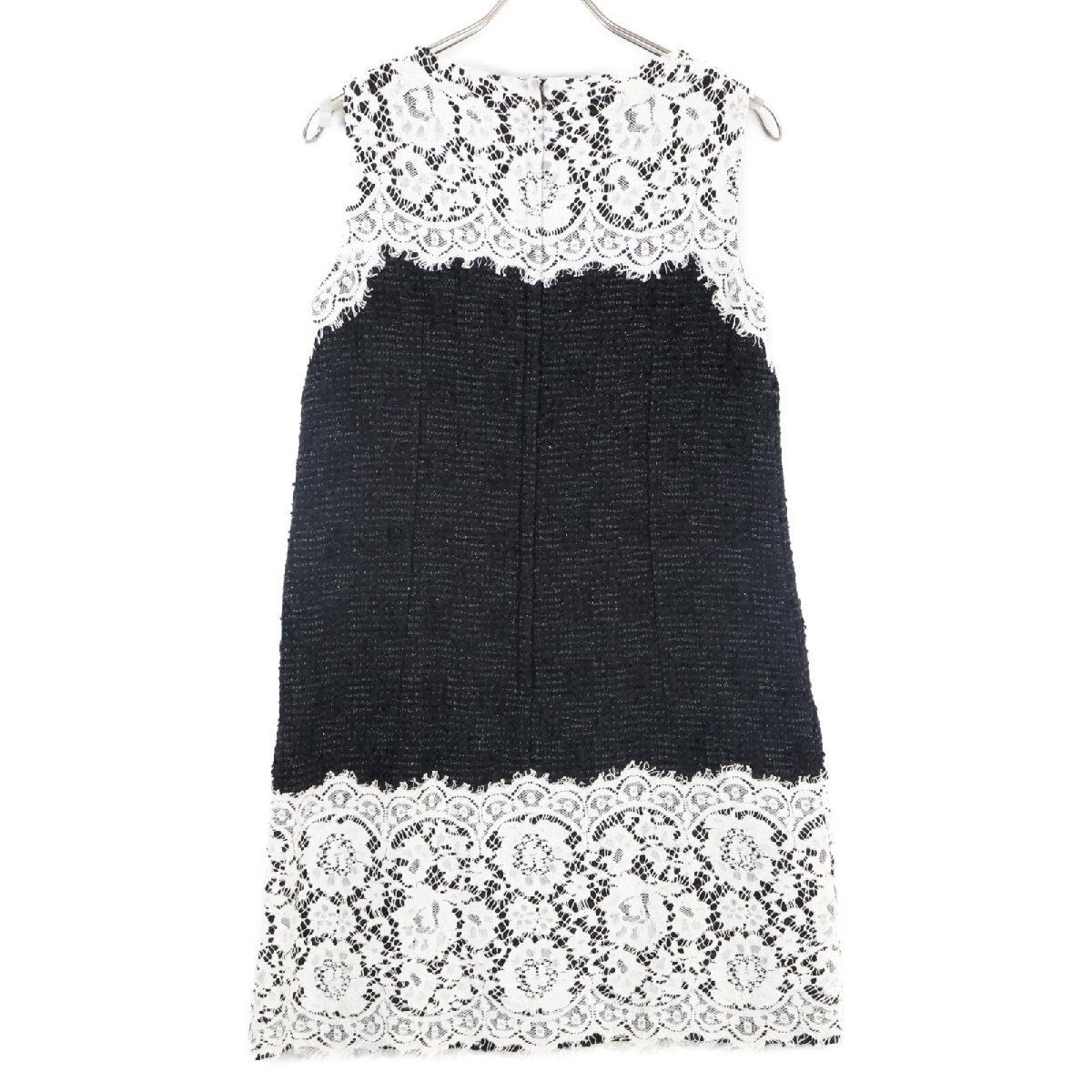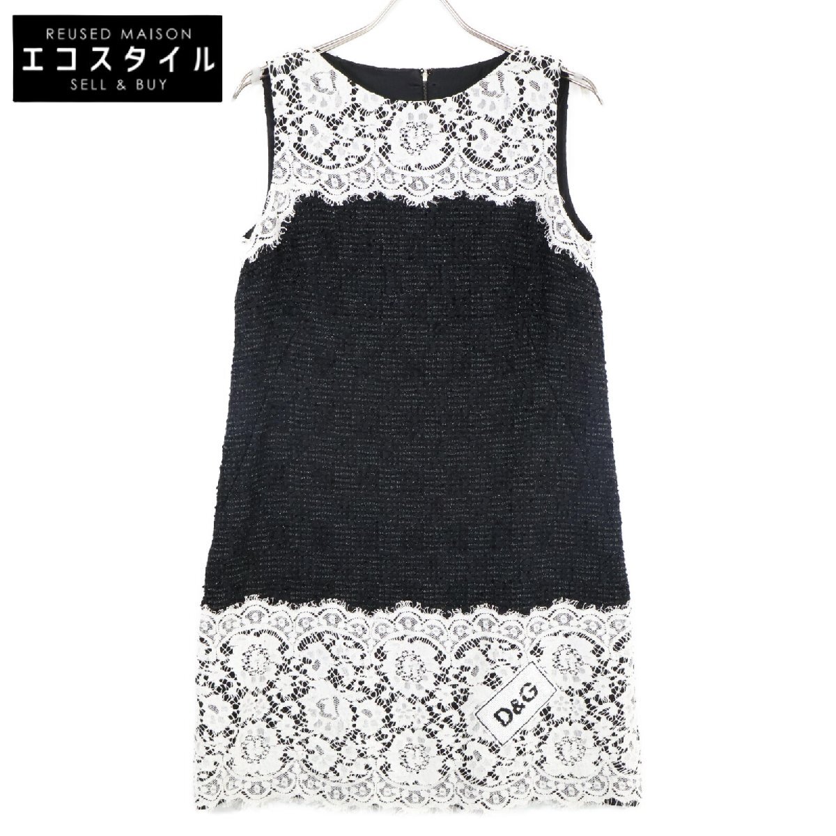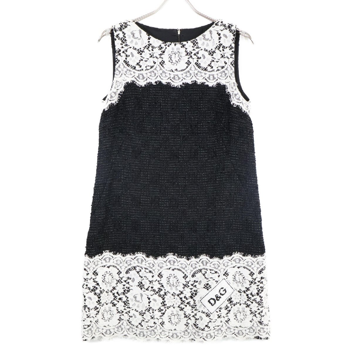 DOLCE&GABBANA ドルチェアンドガッバーナ I6764Z D&Gビジュー ノースリーブ ワンピース 44 ブラック ホワイト レディース