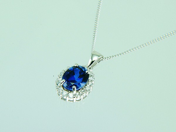 ◆宝石材質:合成サファイア(シンセティック)約3.5ct キュービックジルコニア ◆本体材質:SILVER925 プラチナ仕上げ(ロジウムコーティング) ◆サイズ:トップ タテ14mm、ヨコ12mm ◆チェーン:チェーン:真鍮製ロジュウム仕上げ、長さ=約40cm |