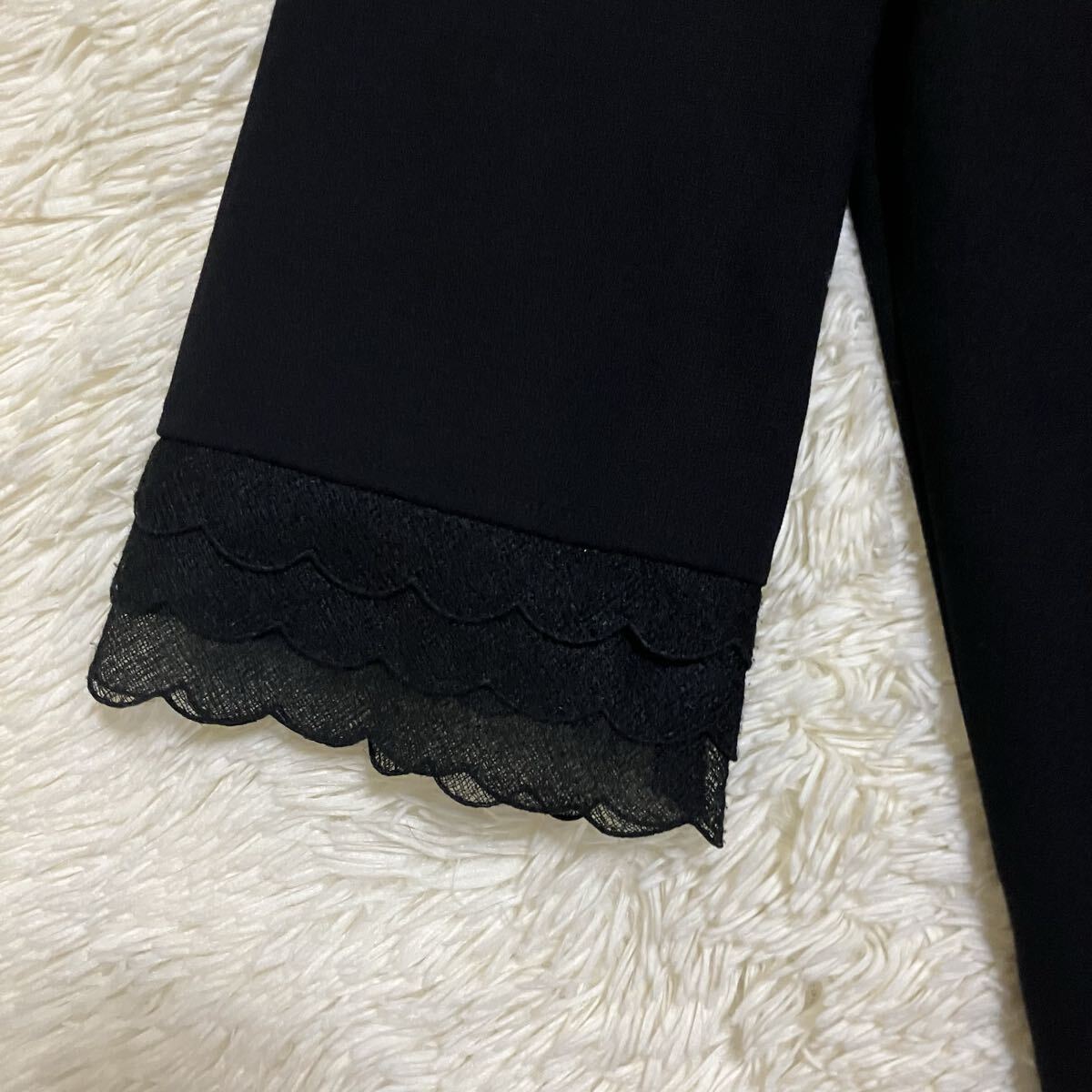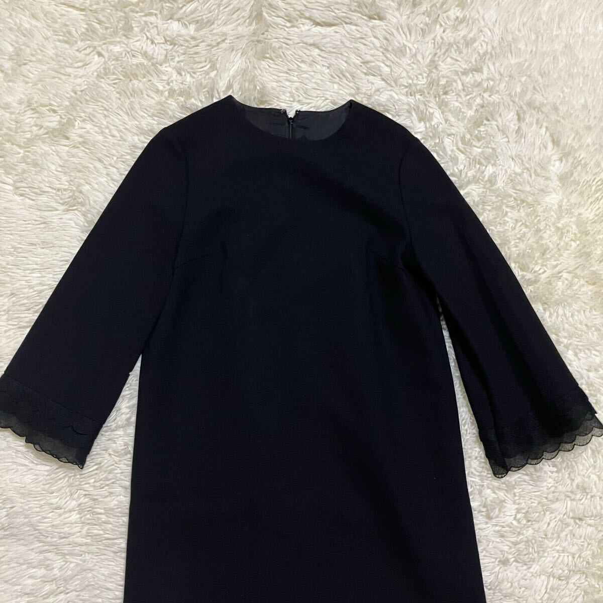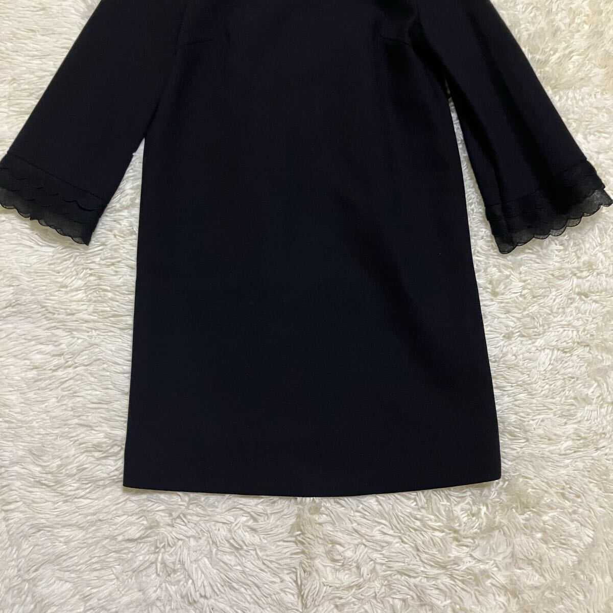 ウール強撚糸をさらに強く撚りをかけたジョーゼット組織は、ややシャリ感があり、毛羽立ちがほとんどない上品な素材に仕上げています。イタリアインポートの繊細なスカラップレースを使用しています。袖口に3段施したスカラップレースがデザインポイントのシンプルなサックワンピース。上品な透け感と、大き目なスカラップが大人っぽい印象です。袖口に重なったスカラップレースが他と差のつく、大人なミニ丈ワンピースです。今シーズン気になるミニ丈レングスは上質な素材感とミニマルかつきちんと華やかになれるデザインポイントで子供っぽくならず、ぜひお試しいただきたい1点です。