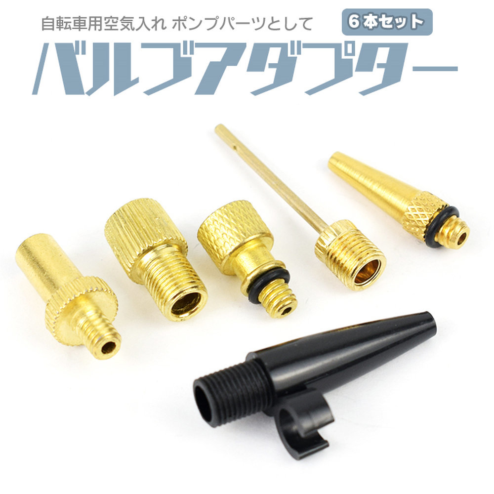 エアバルブアダプター 6点セット 真鍮製 錆びにくい 自転車タイヤ インフレータ ポンプ 仏式/米式/英式変換 GWABADP06S