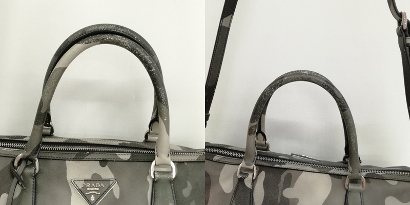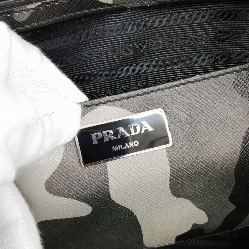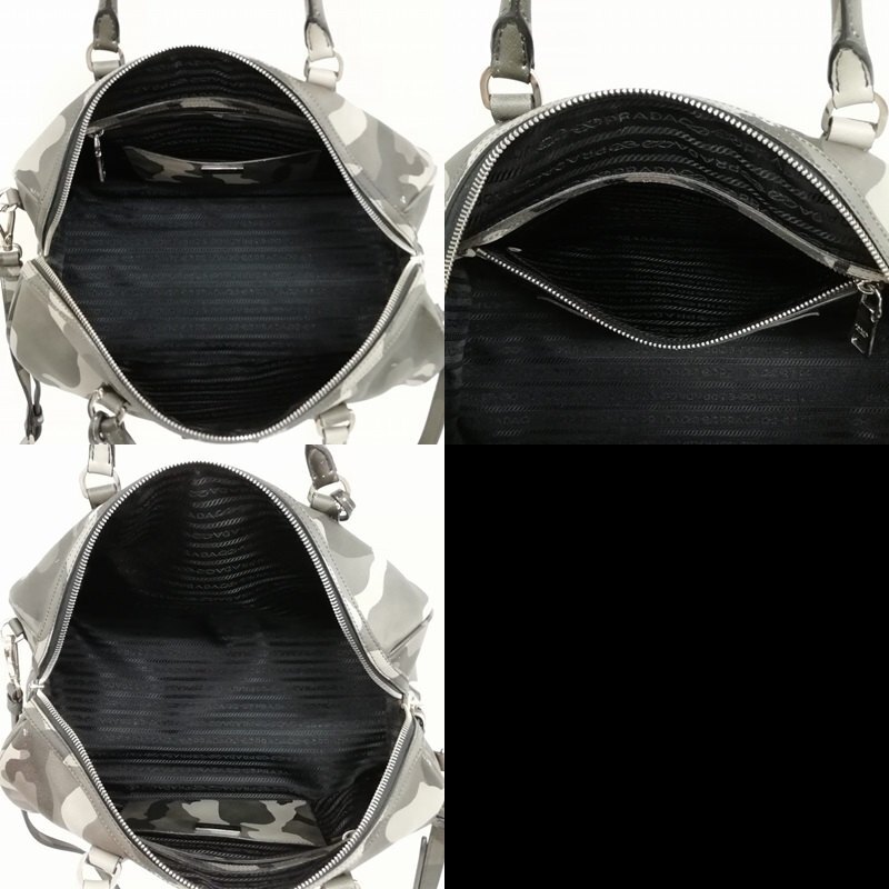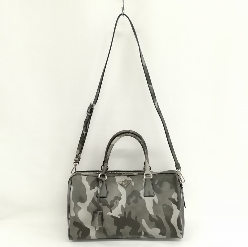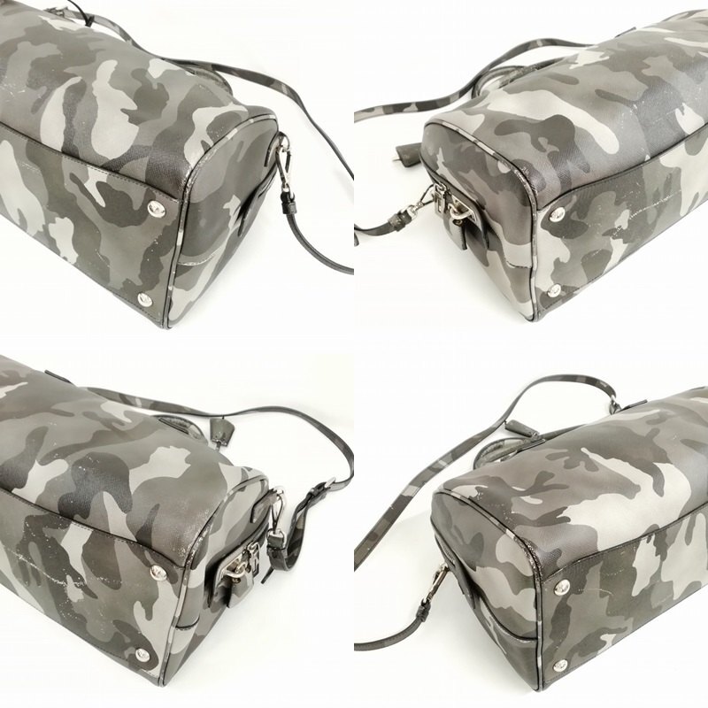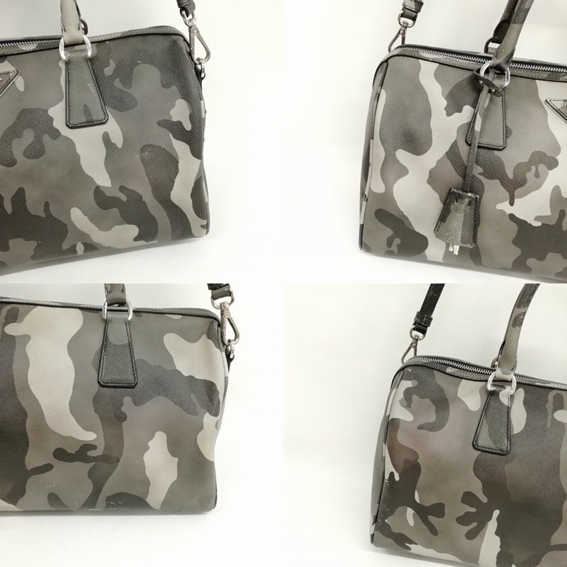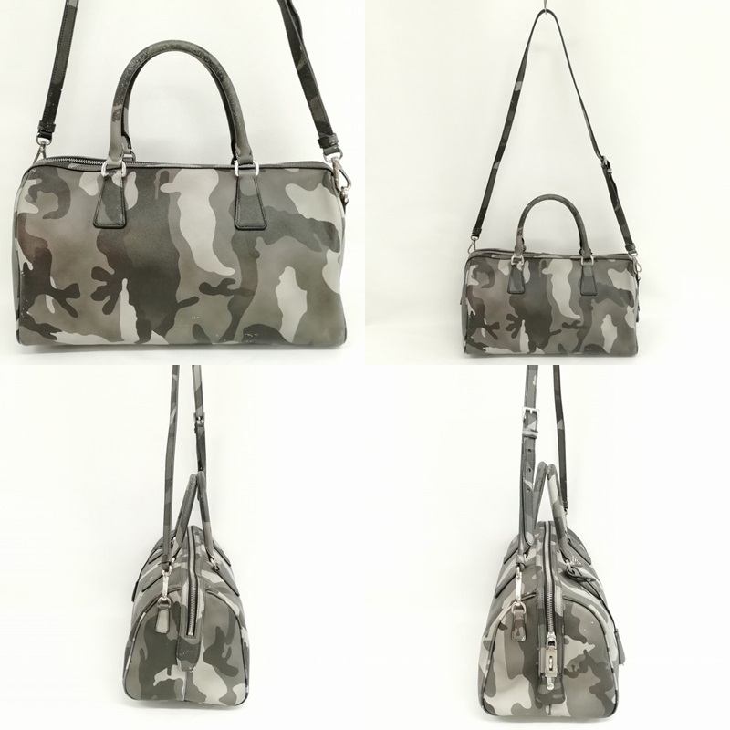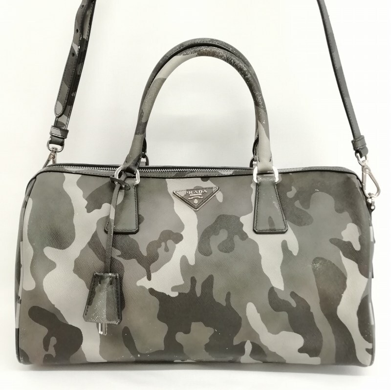 プラダ PRADA サフィアーノ カモフラ 迷彩 2way ボストンバッグ ショルダーバッグ 三角プレート グレー系 レディース