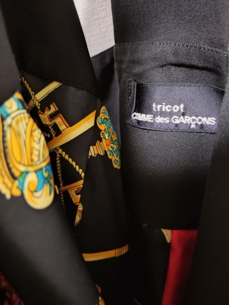 かなり状態良いと思いますが、ハンガーに挟んだ後があるのと、洗濯タグありません