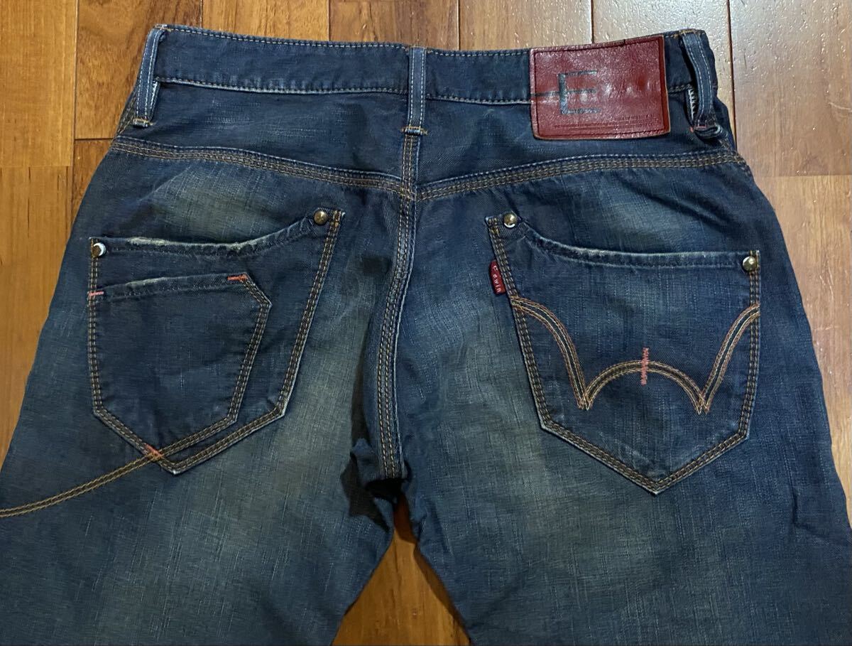 エドウィンのデニム(ジーンズ)、EG5005です。USEDで裾直ししておりますが状態は良いです(10段階中8程度)。生地は綿100%です。牛革パッチ、ジッパーフライです。正規品です((株)エドウイン商事、ベトナム製)。サイズはSでウエストは重ねずに平置きで約76cm、ヒップ約108cm、股上約23cm、股下約74cm、股下15cmのふともも部分約51cm、裾まわり約41cm、重量約530gです。発送はゆうパケットポストになります。