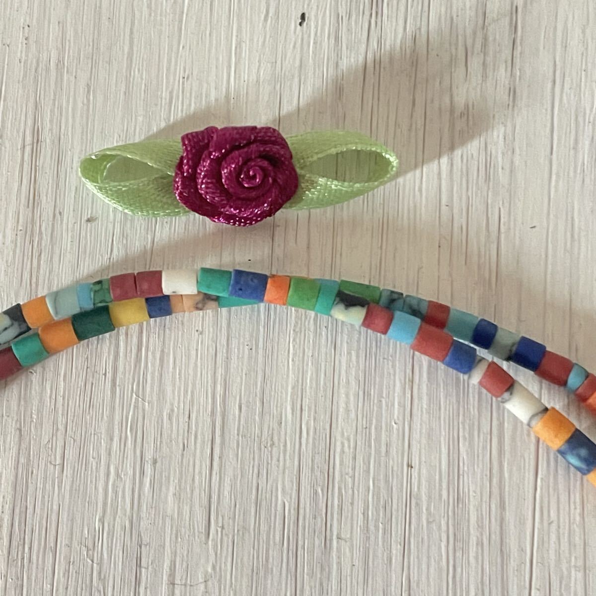 少しシックなお色のターコイズビーズを組み合わせて少し落ち着いた大人を感じさせてるネックレスを作って貰いました。