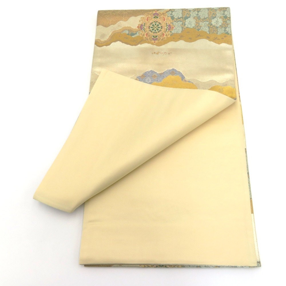 | 西陣織 袋帯 道長取り 正倉院文様 金糸 正絹 フォーマル 仕立て上がり 着物帯 長さ448cm 未使用品 |