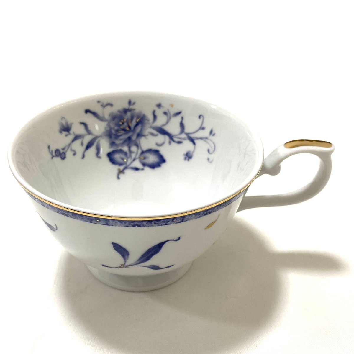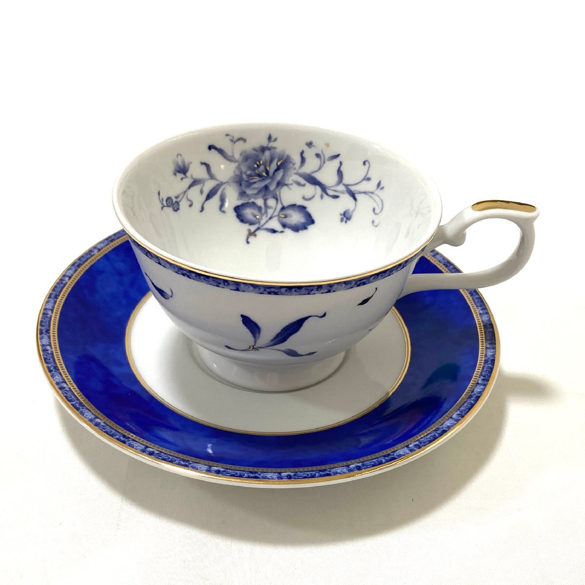 新品 未使用 NARUMI ナルミ カップ&ソーサー 5客セット Fine China 洋食器 茶器 金彩 花柄 模様 ブルー 青 藍 //ハ