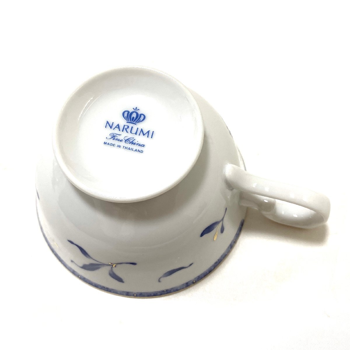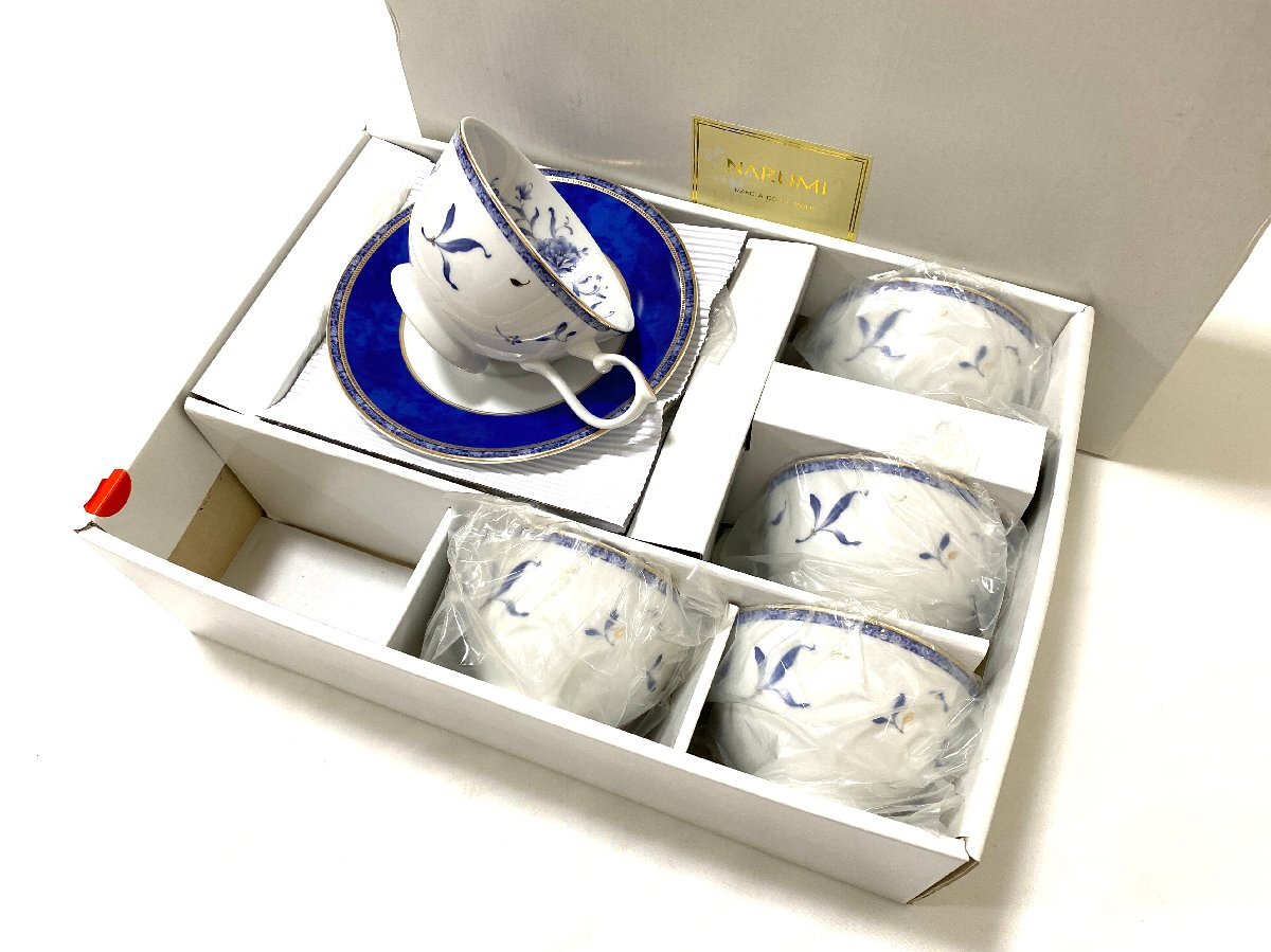 新品 未使用 NARUMI ナルミ カップ&ソーサー 5客セット Fine China 洋食器 茶器 金彩 花柄 模様 ブルー 青 藍