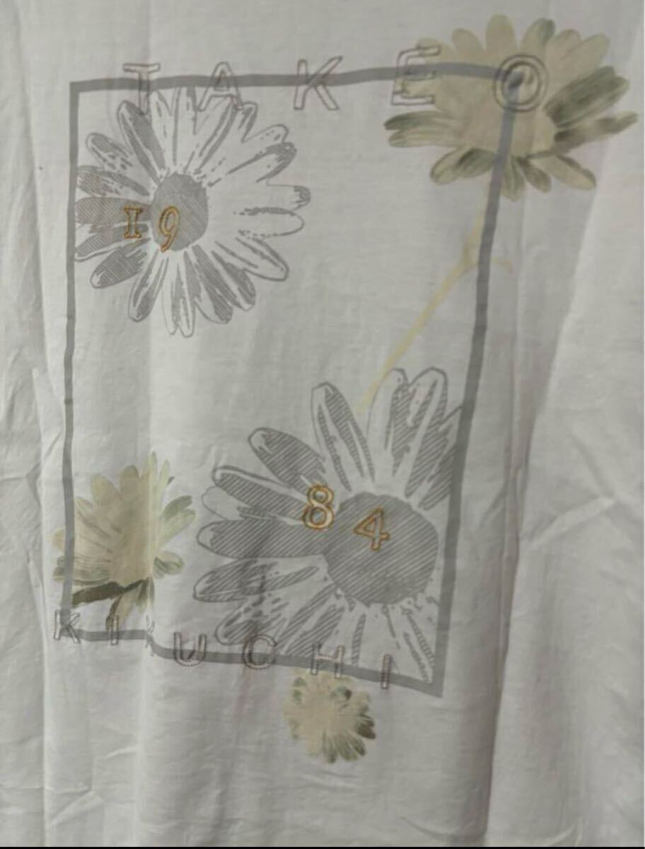 TAKEO KIKUCHIの22SSコレクションから登場したデイジーフラワーTシャツ。フロントに小さく、バックには大胆に描かれたデイジーフラワーのグラフィックが印象的な一枚です。繊細で上品なデザインが、シンプルなTシャツに華やかさをプラスしています。