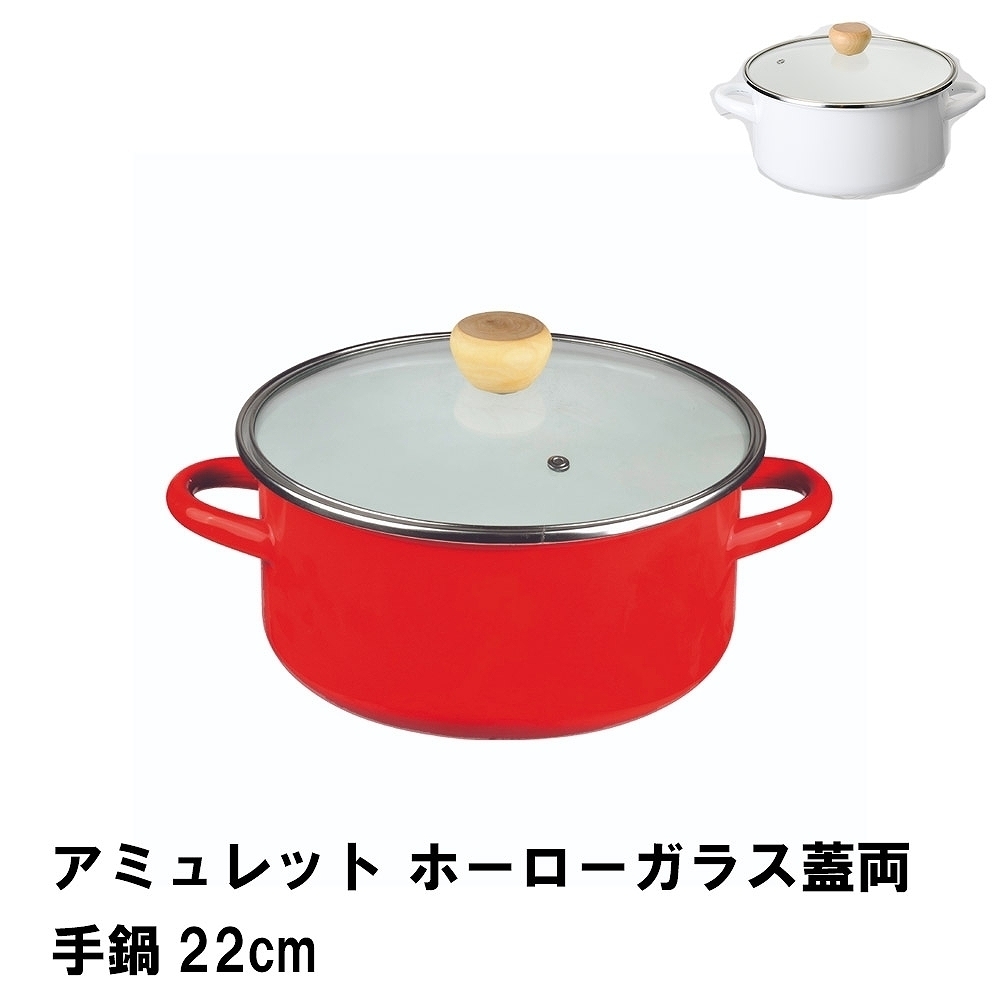 | 商品名 | アミュレット ホーローガラス蓋両手鍋22cm レッド M5-MGKPJ02095RD |