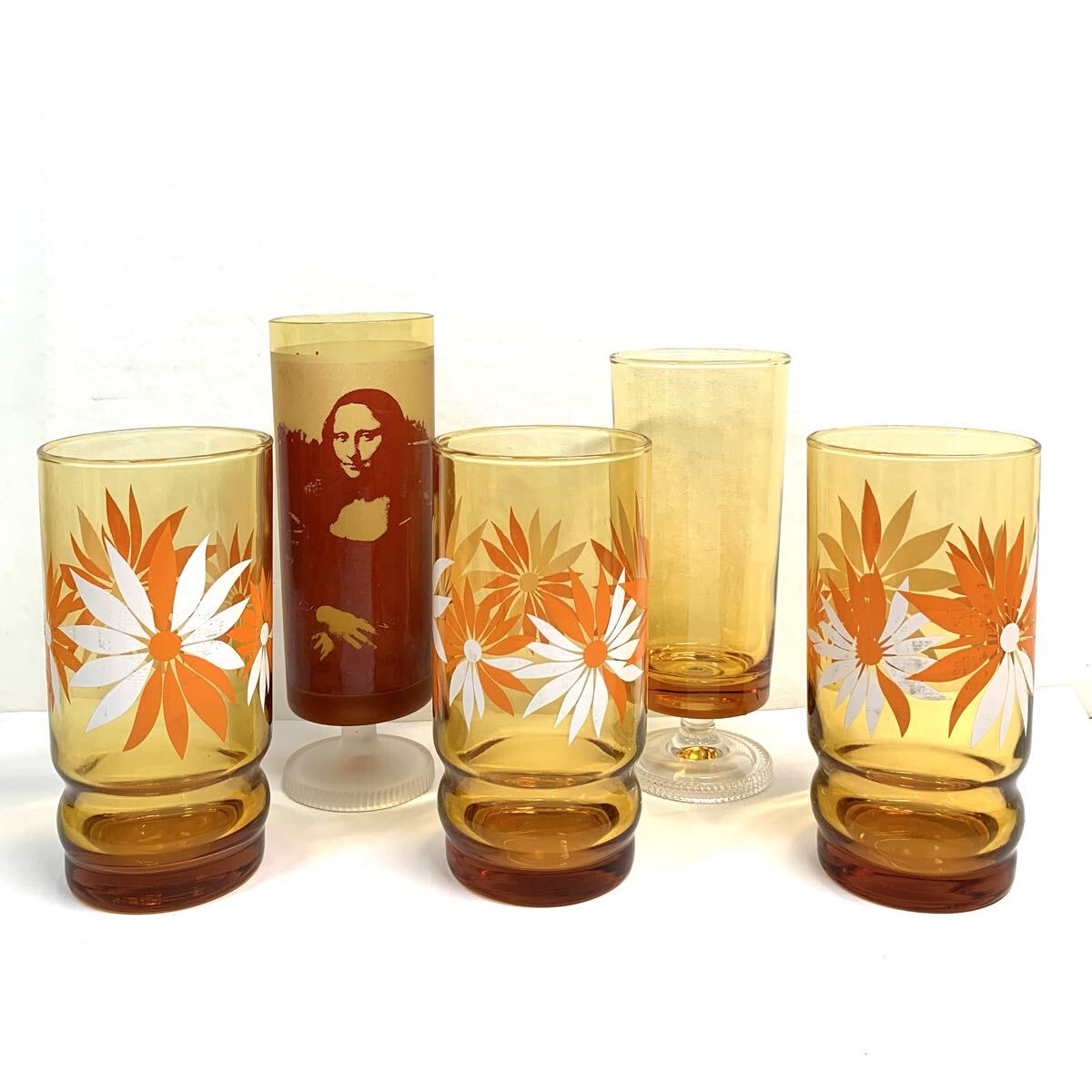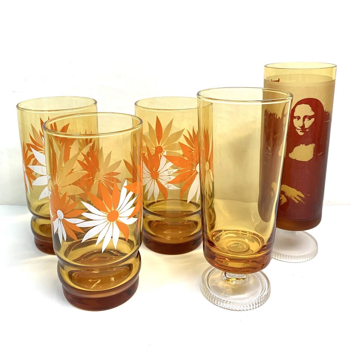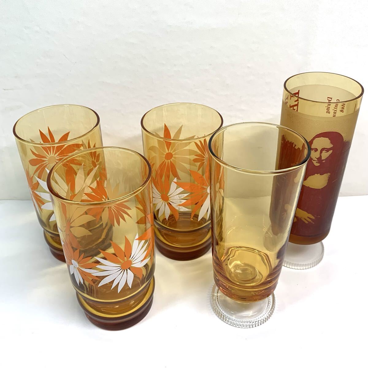 昭和レトロ アデリアグラス 5客まとめて タンブラーグラス ガラスコップ 脚付グラス ADERIA