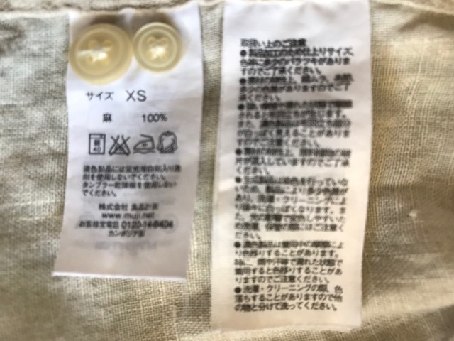 ■ 2012年夏の無印良品リネン100% スリムフィットシャツ。長袖(ベージュ)Sサイズ。