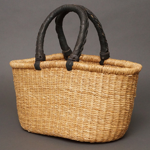 ハンドルにブラックレザーを使用した楕円型マルシェバスケットです。