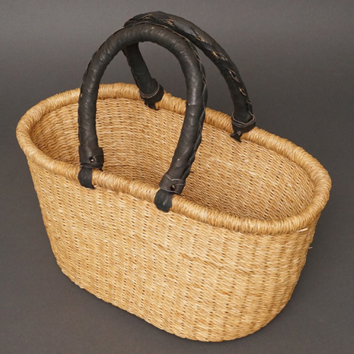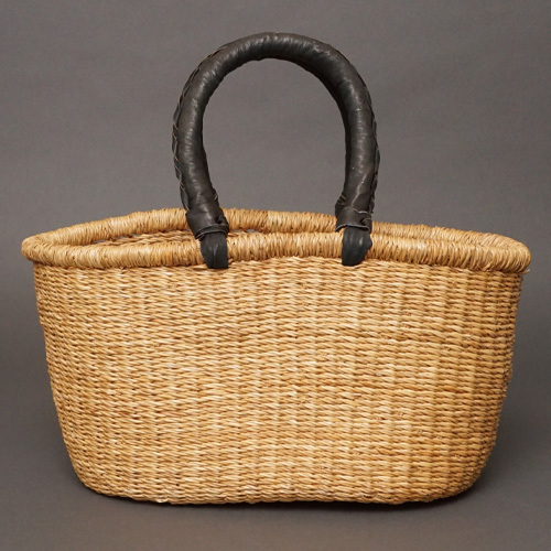 アフリカ ブルキナファソ 楕円  バスケット ブラック 無地 Mサイズ  No.6 かご かごバッグ ボルガバスケット