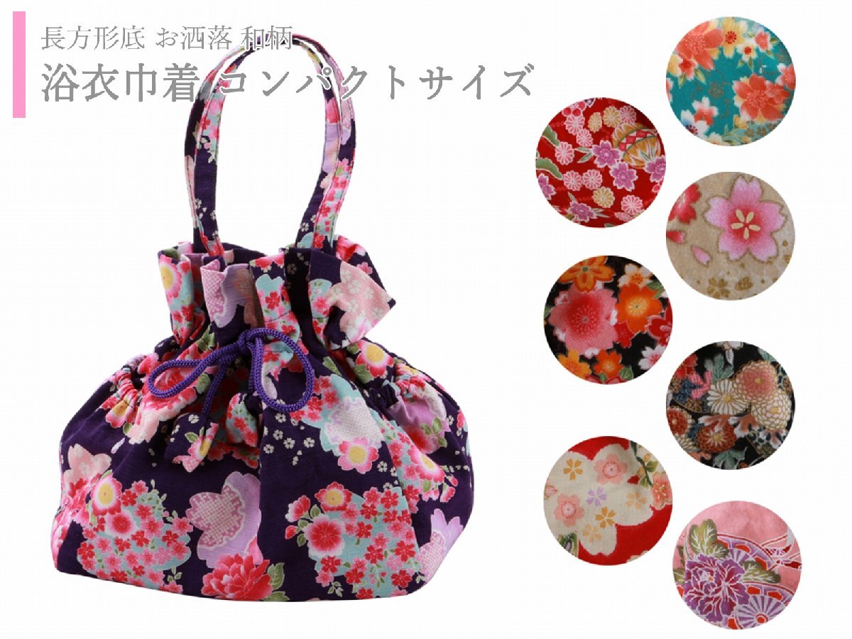 ◆ゆかた巾着◆お洒落巾着 浴衣用 巾着バッグ 長方形底 コンパクトサイズ kk-179 (77)【夏祭り 小物入れ きんちゃく ポーチ 和柄】