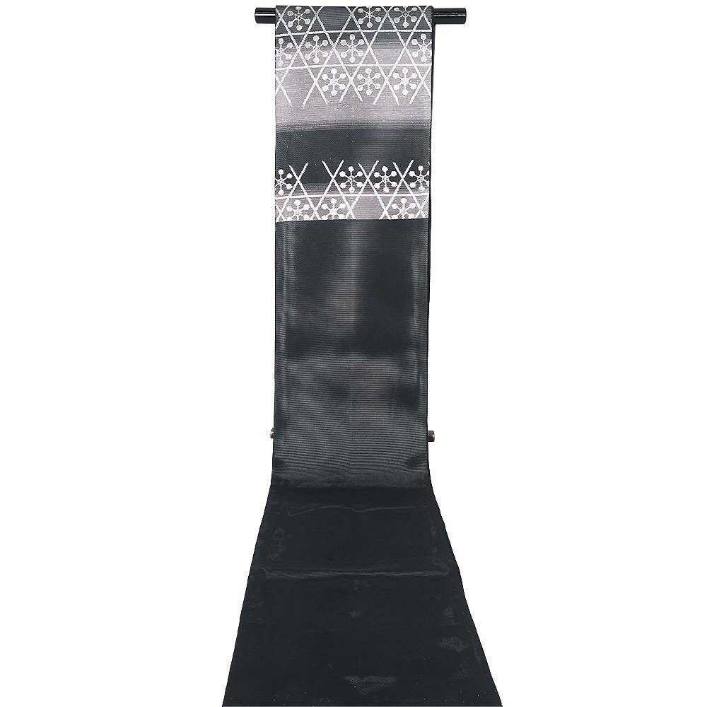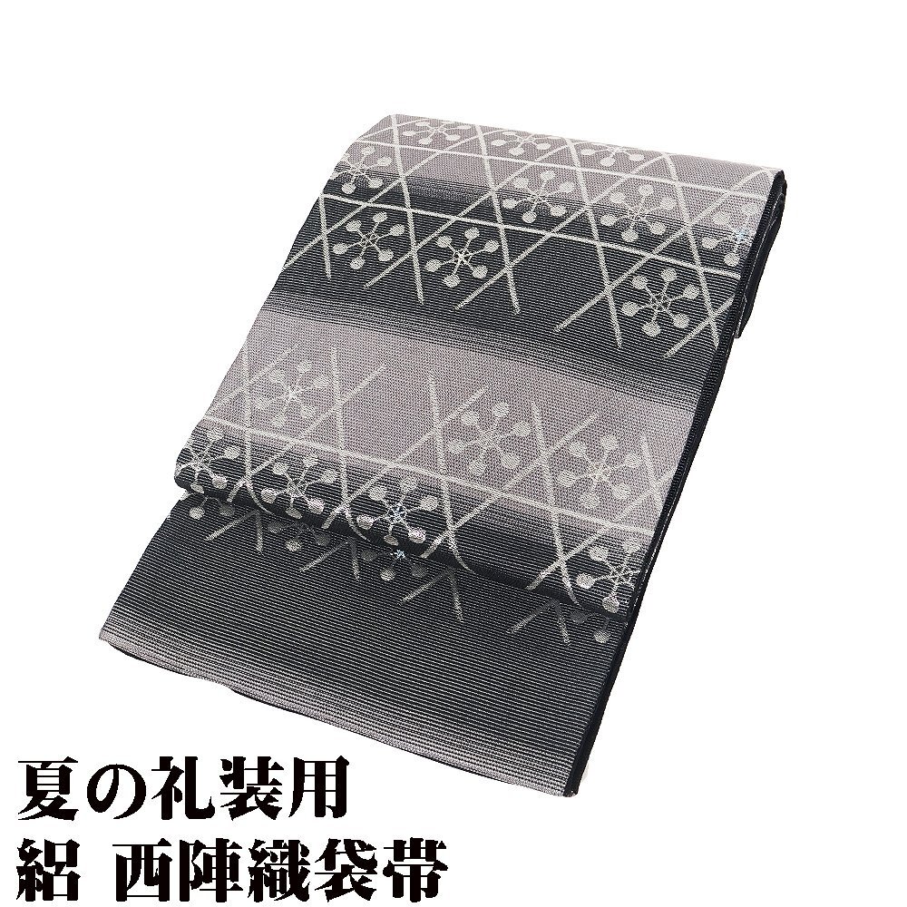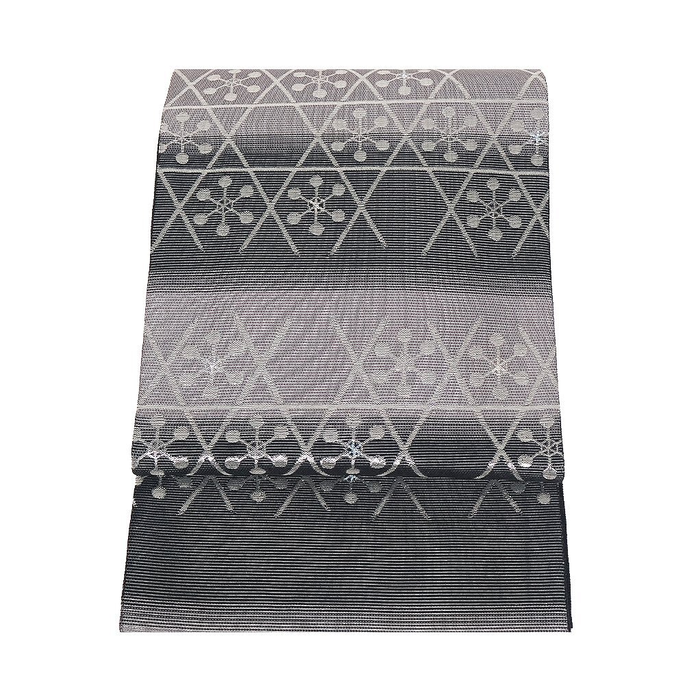 | 絽 西陣織袋帯 黒・グレー・銀箔・縞地 雪結晶 仕立て上がり | |
