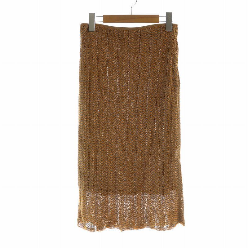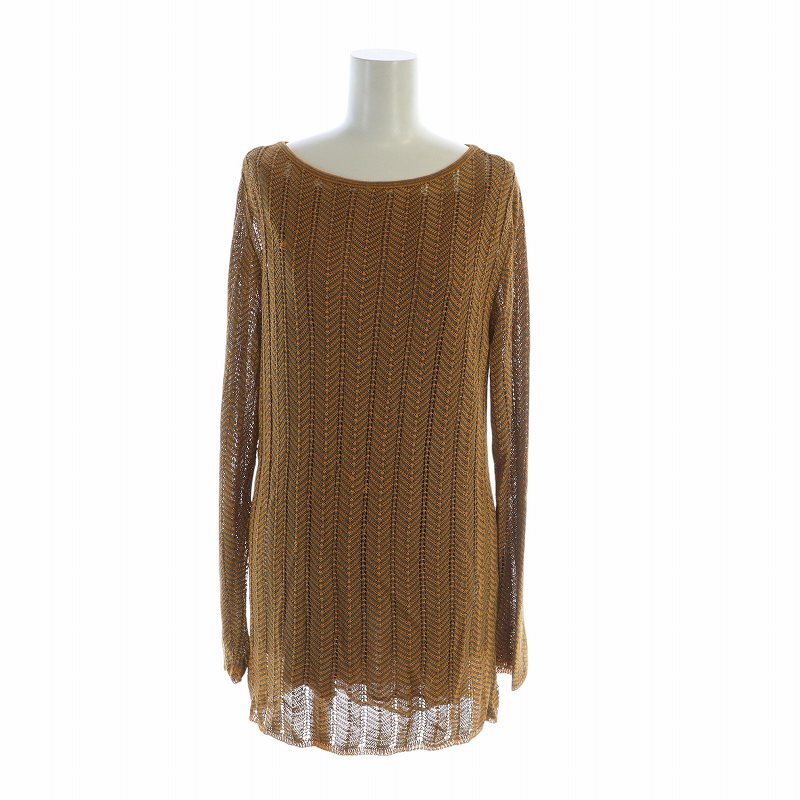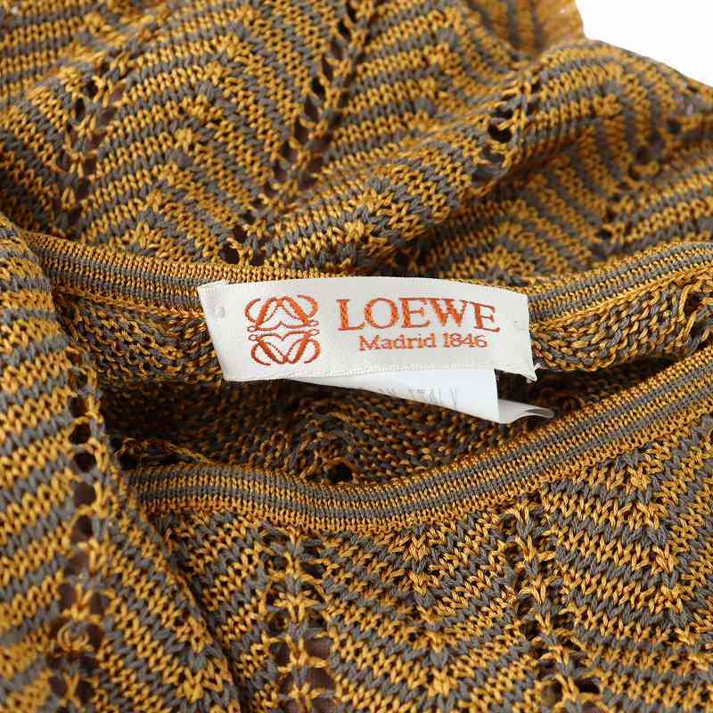 ロエベ LOEWE セットアップ 上下 カットソー フレアスカート ニット ヘリンボーン ロゴ 長袖 S M 茶 ブラウン /MQ レディース