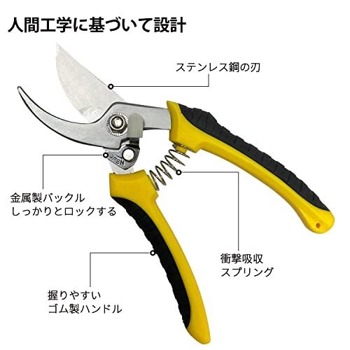 送料無料! 剪定ハサミ 園芸用はさみ ロック機能付き Sutekus 太い枝を簡単に切る 庭木/枝切り/果樹/盆栽剪定/庭園作業