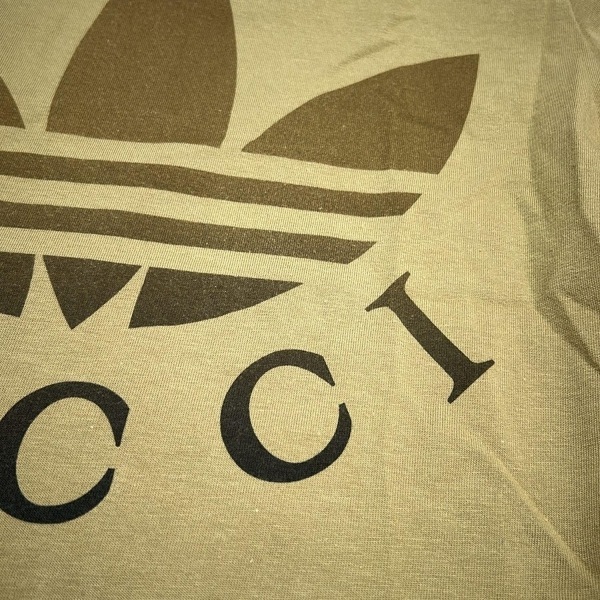グッチ GUCCI 半袖Tシャツ サイズS 723405 XJE2D - ブラウン×アイボリー レディース クルーネック/adidasコラボ/タグ取れかけ トップス