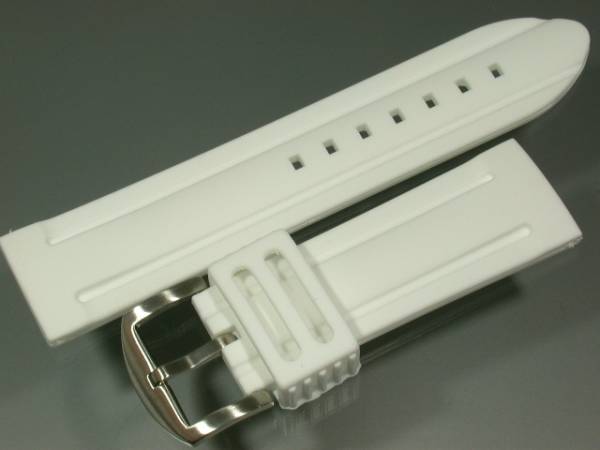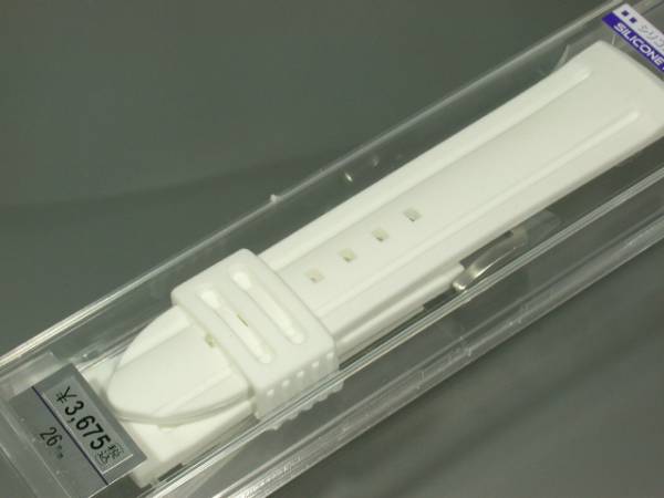 ビッグフェイスにマッチするシリコンラバーバンドです。シリコンは、ウレタンに比べて温度変化に影響されぬくく、四季を通じて柔軟なままでご使用できます。デメリットは、ウレタンに比べホコリが付き易い。