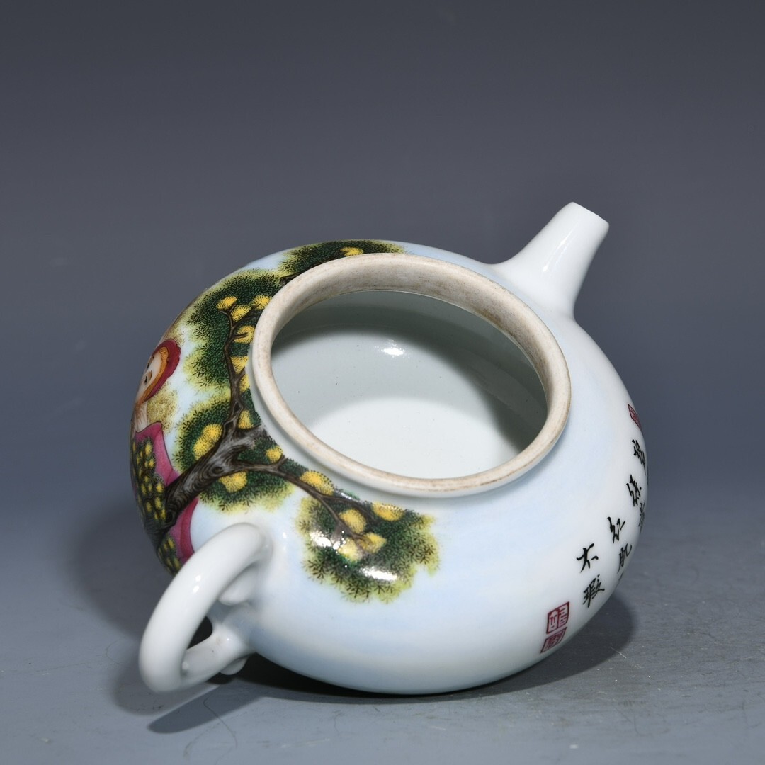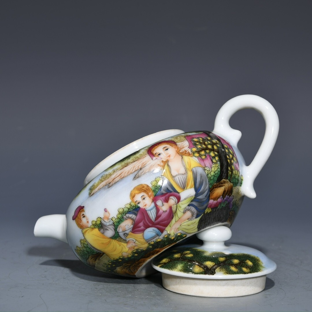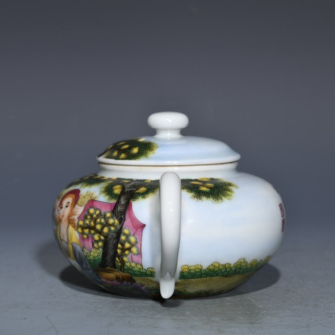 清代 大清雍正年製 陶磁器 琺瑯彩西洋人物紋 題詩壺【仁】染付 置物擺件 古賞物 古美術 中国古玩 蔵出