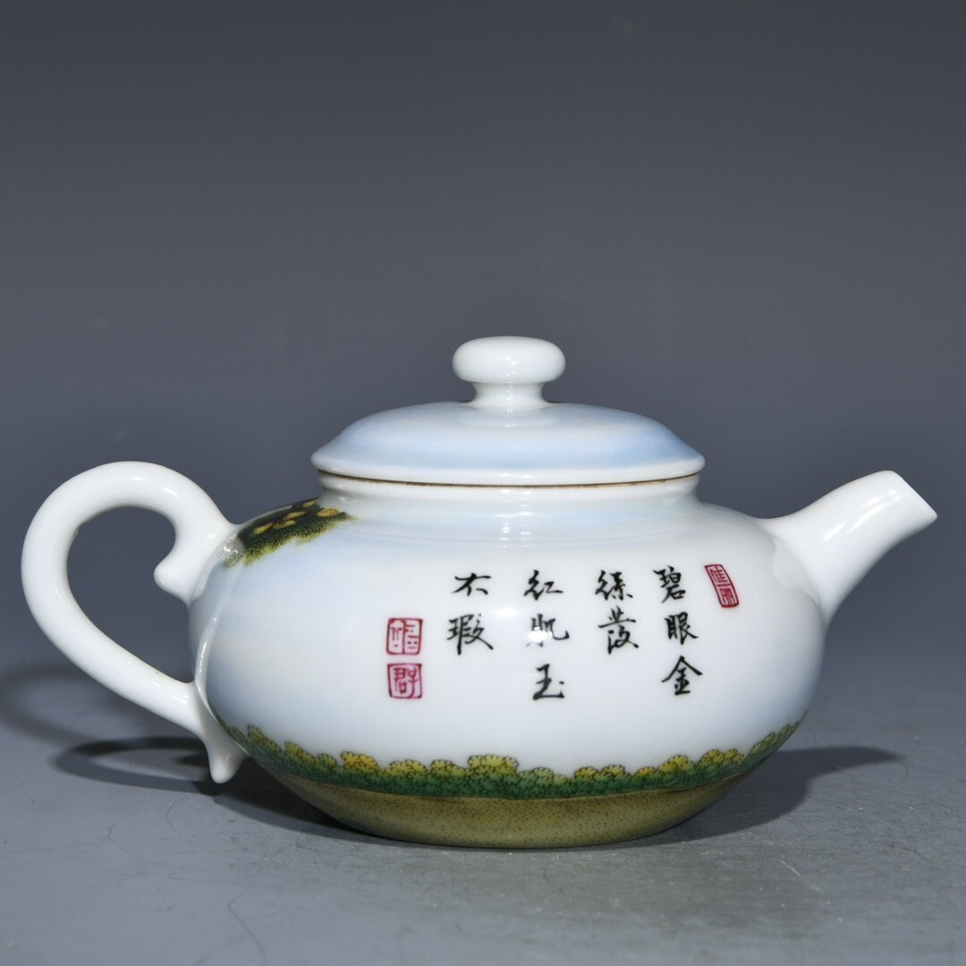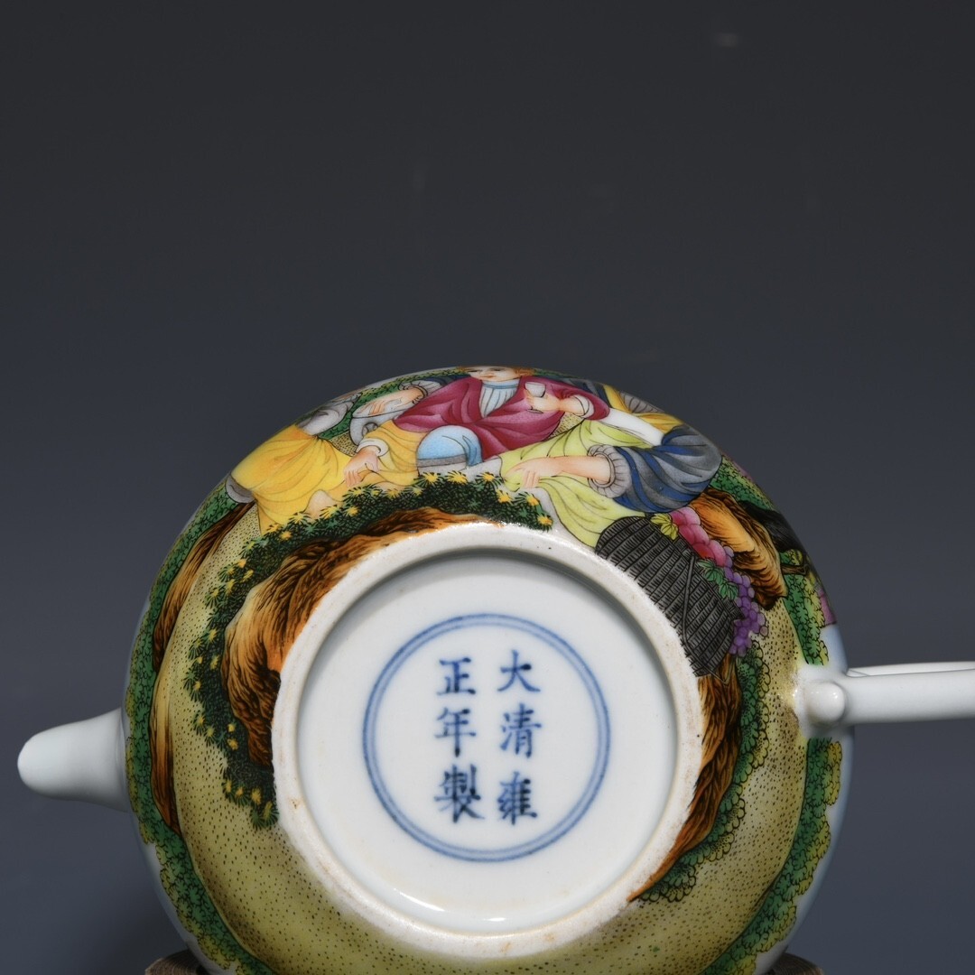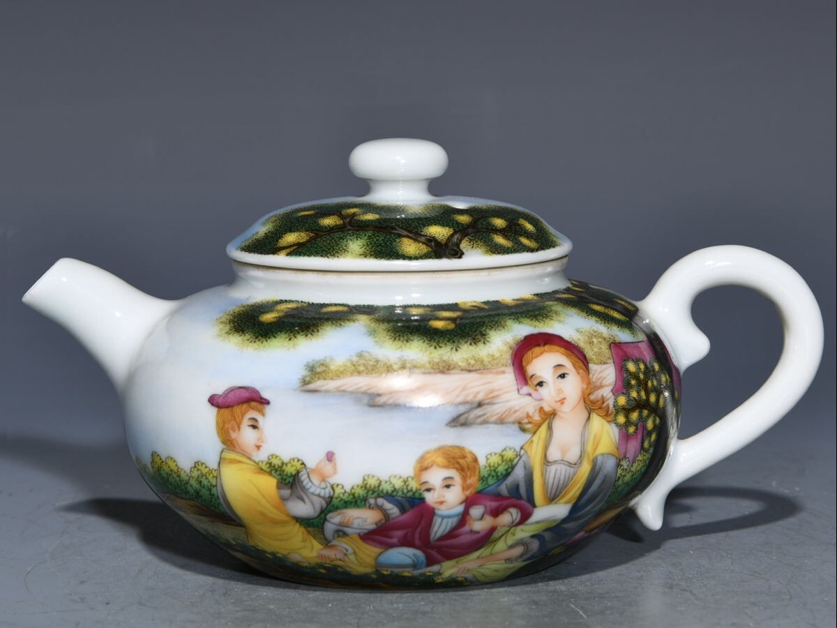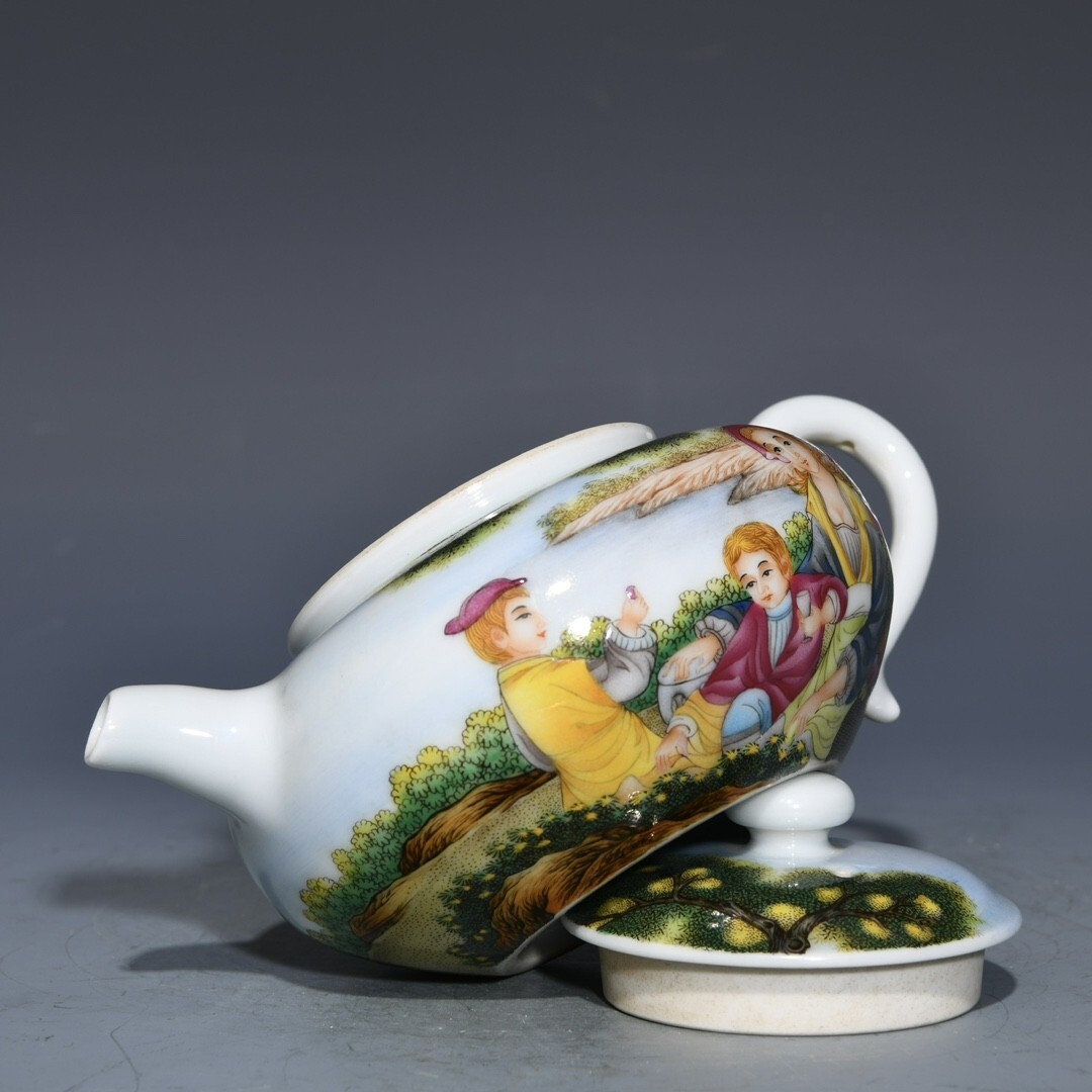 清代 大清雍正年製 陶磁器 琺瑯彩西洋人物紋 題詩壺【仁】染付 置物擺件 古賞物 古美術 中国古玩 蔵出