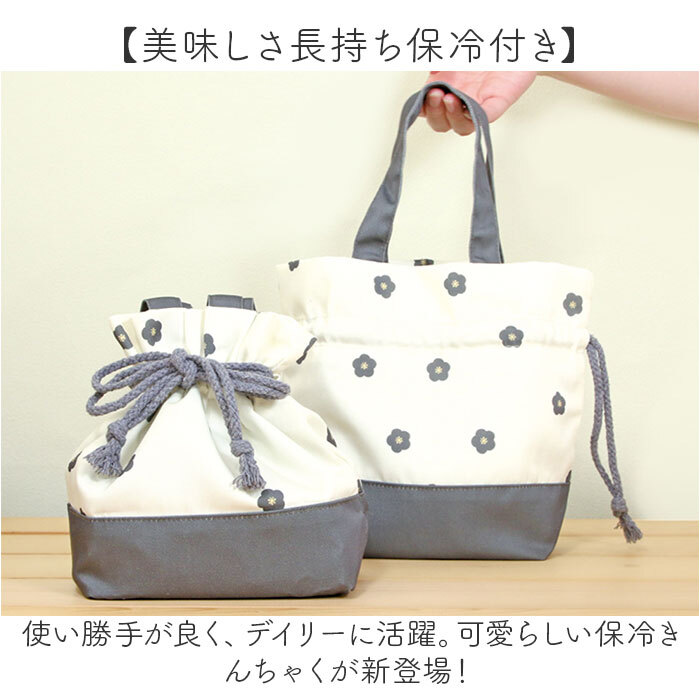 | 商品説明 | ・・【美味しさ長持ち保冷付き】 ・使い勝手が良く、デイリーに活躍。可愛らしい保冷きんちゃくが新登場! ・【キュートな花柄で気分もアップ】 ・表地に小梅柄をON♪ランチタイムを可愛く彩るアイテム☆ ・【嬉しい保冷・保温効果】 ・シルバーコーティングの裏地は保冷・保温効果があり美味しさを長持ち。 ・【汚れても安心】 ・もし汚れてしまっても手洗いができ、清潔に保てるのも嬉しいポイント。 ・【持ち運びに便利な2WAY】 ・巾着としてはもちろん、ハンドルも付いておりランチトートとして使える◎ ・【飽きが来ず長く愛用できる】 ・年代問わず使いやすい、ナチュラルでおしゃれな巾着。 |