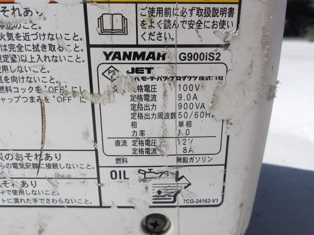 ヤンマー インバーター 発電機 G900is 100V 900VA 50/60Hz 中古の出品です。