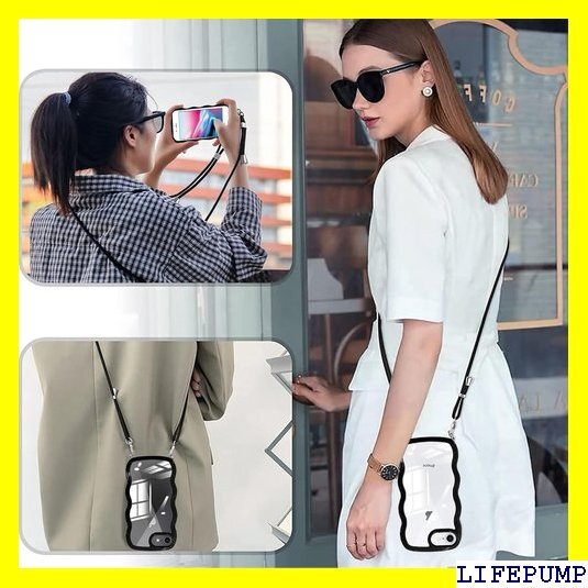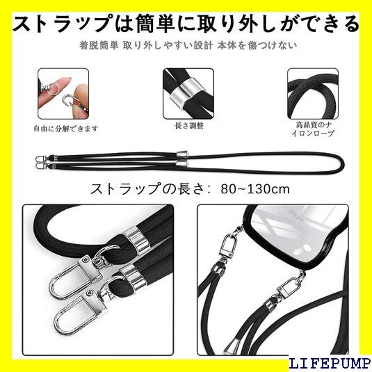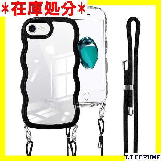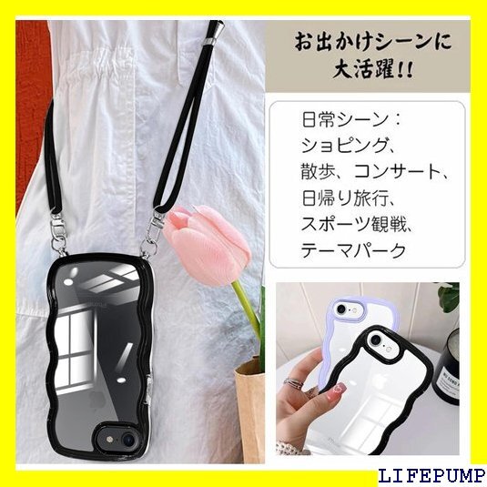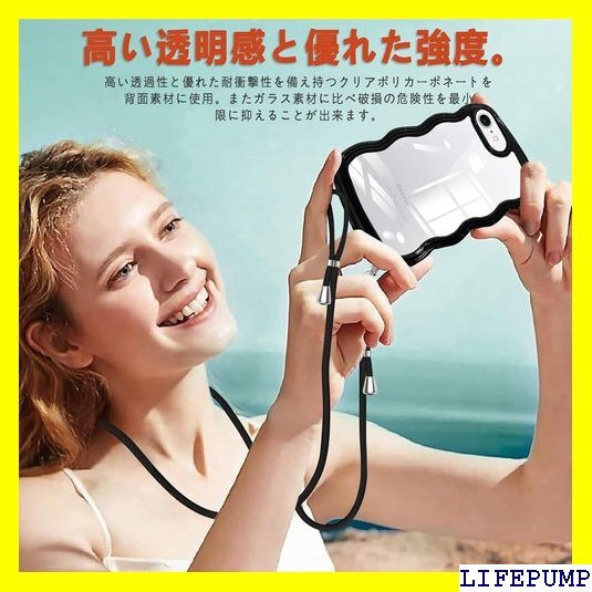 iPhone SE ケース クリア ショルダー iPh フォン SE 第3世代 第2世代 スマホケース ブラック 728
