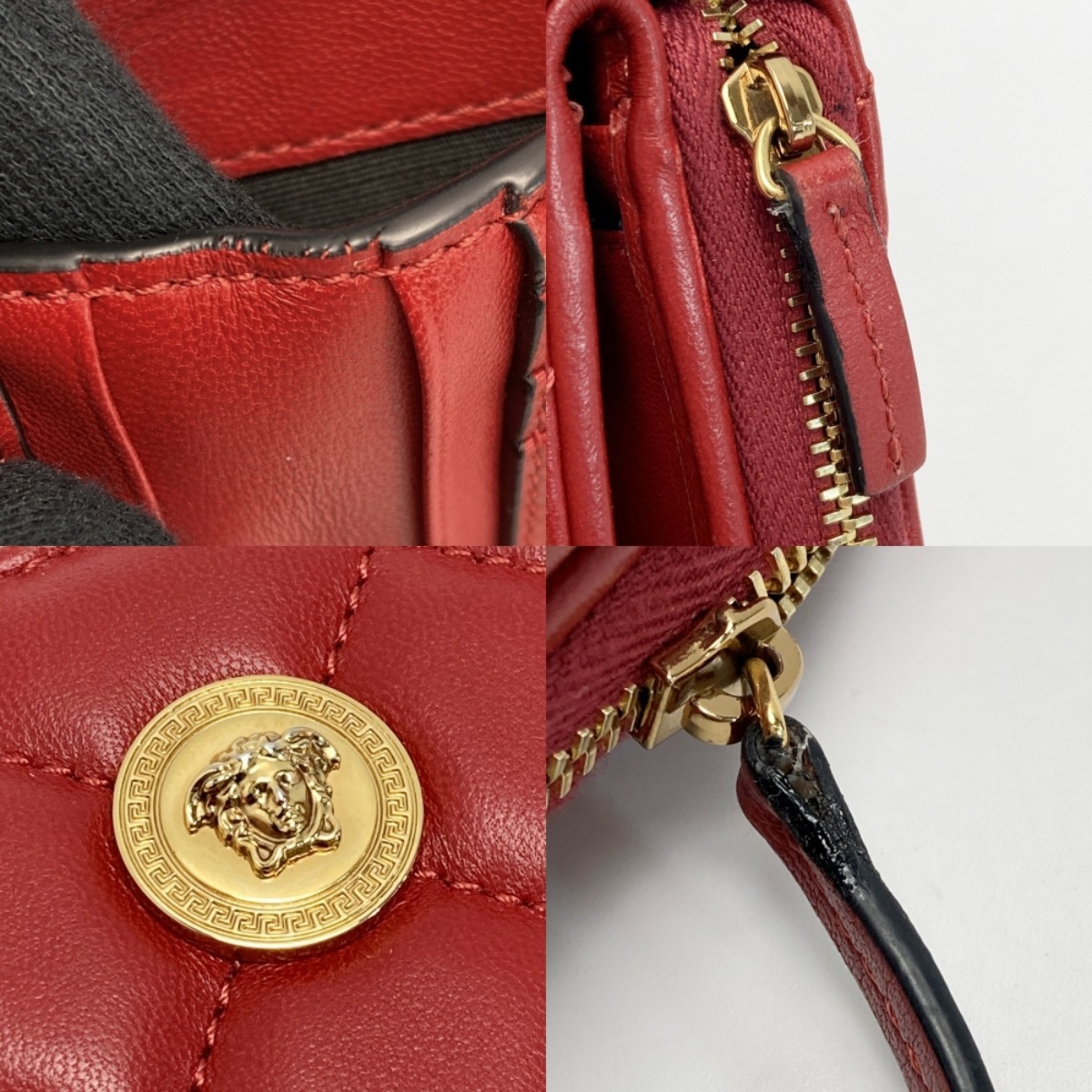 ☆☆ VERSACE ベルサーチ メデューサ キルティング 2つ折り財布 レッド レザー ラウンドファスナー やや傷や汚れあり