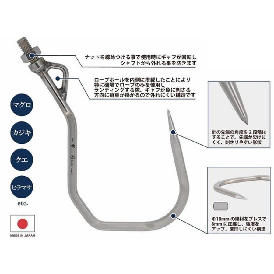 マグロ、カジキ、クエなど大型の魚に対応するビッグゲームギャフ。掛けた魚をランディングしやすく、逃がしにくい形状。素材は強度が高く、錆びに強い18-8ステンレスを採用。材質 18-8ステンレスサイズ 約H275×W150、線径11×8mm重量 約340g垂直耐荷重 160kgネジ径 4分 (★複数在庫あります)4995202403598 |
