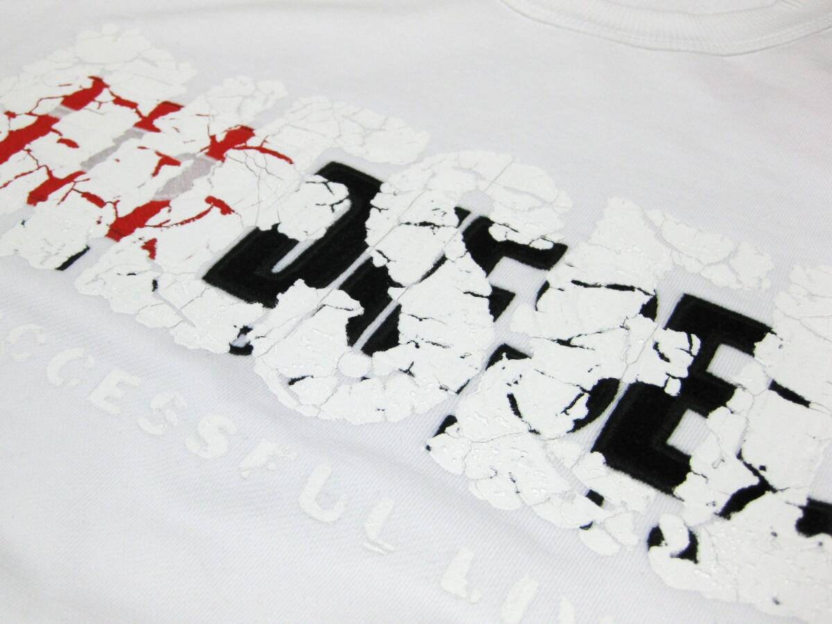 ディーゼルの定番ヴィンテージロゴの上にクラック(ひび割れ)ロゴを乗せています。